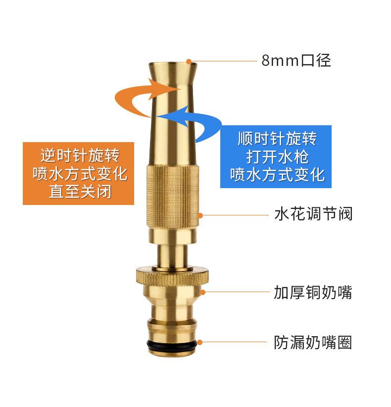 Fábrica de Origen Hogar Lavado de Autos Cobre Recto Pistola de Rociado de Agua Recta Alta Presión Jardín Pistola de Agua Cabezal Boquilla Niple Riego Flor Pistola de Agua