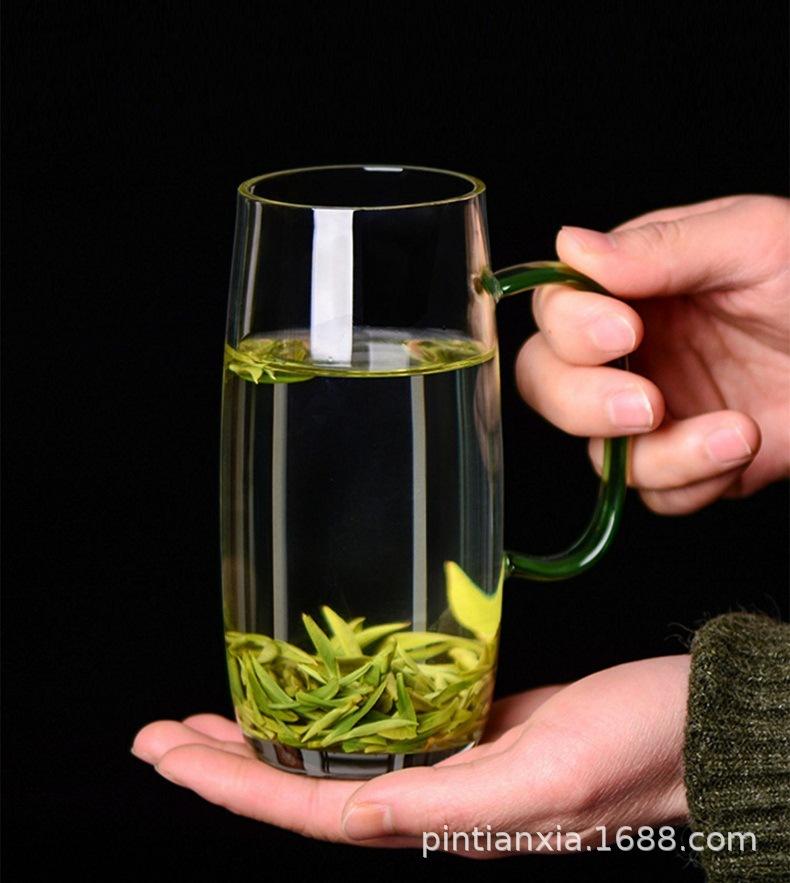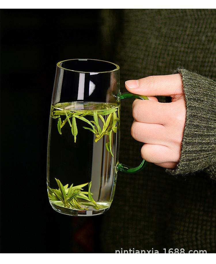 Transparent green tea cup (green handle)