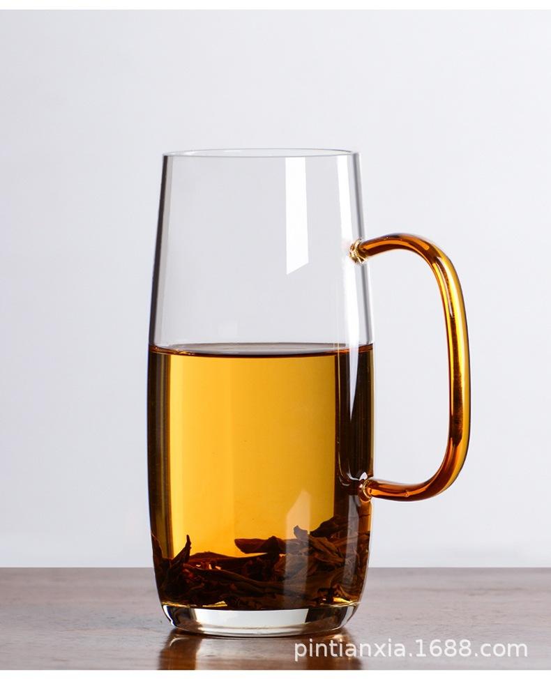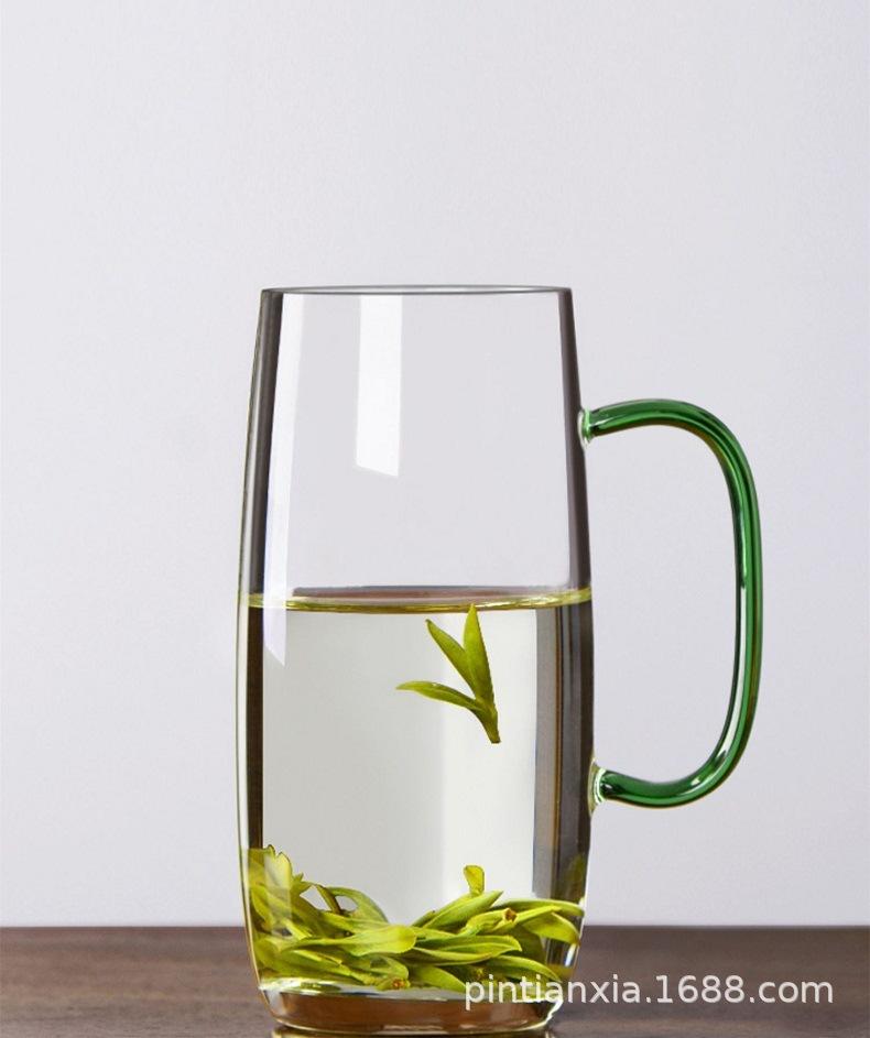 Transparent green tea cup (green handle), Transparent green tea cup (yellow handle)