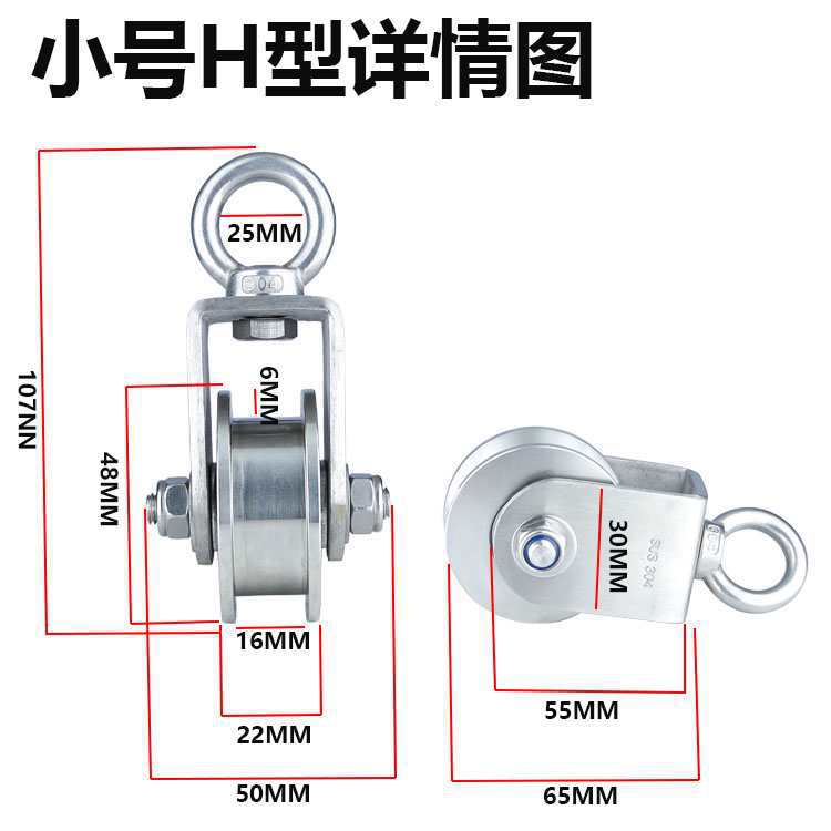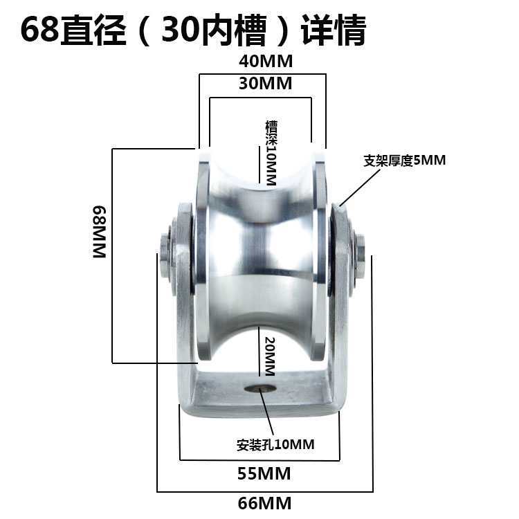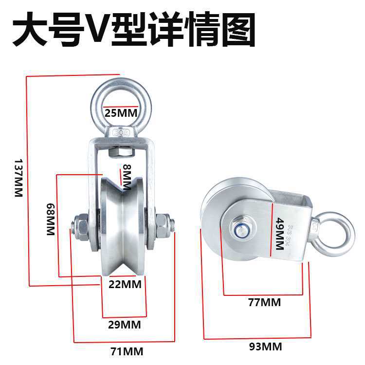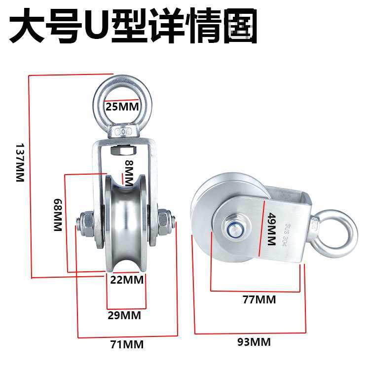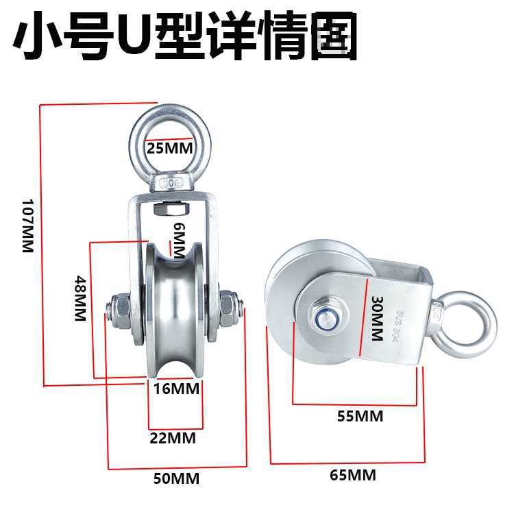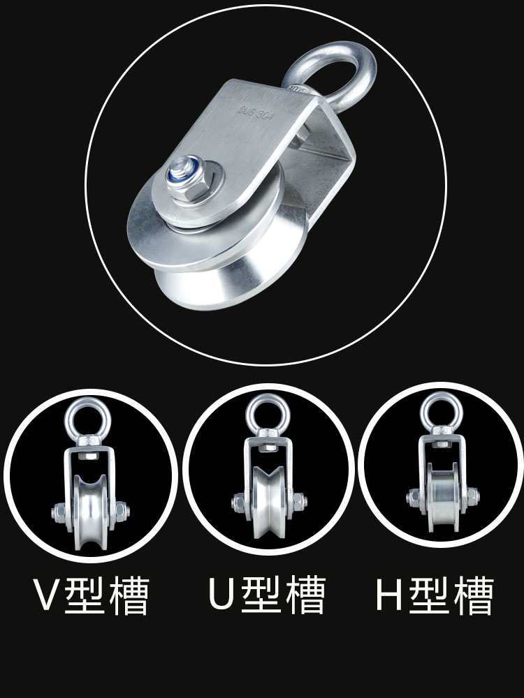 Polea de acero inoxidable 304 para riel de rodamiento, polea de cable de acero, polea de ranura en V en forma de U, polea de elevación para puerta corredera, anillo de elevación