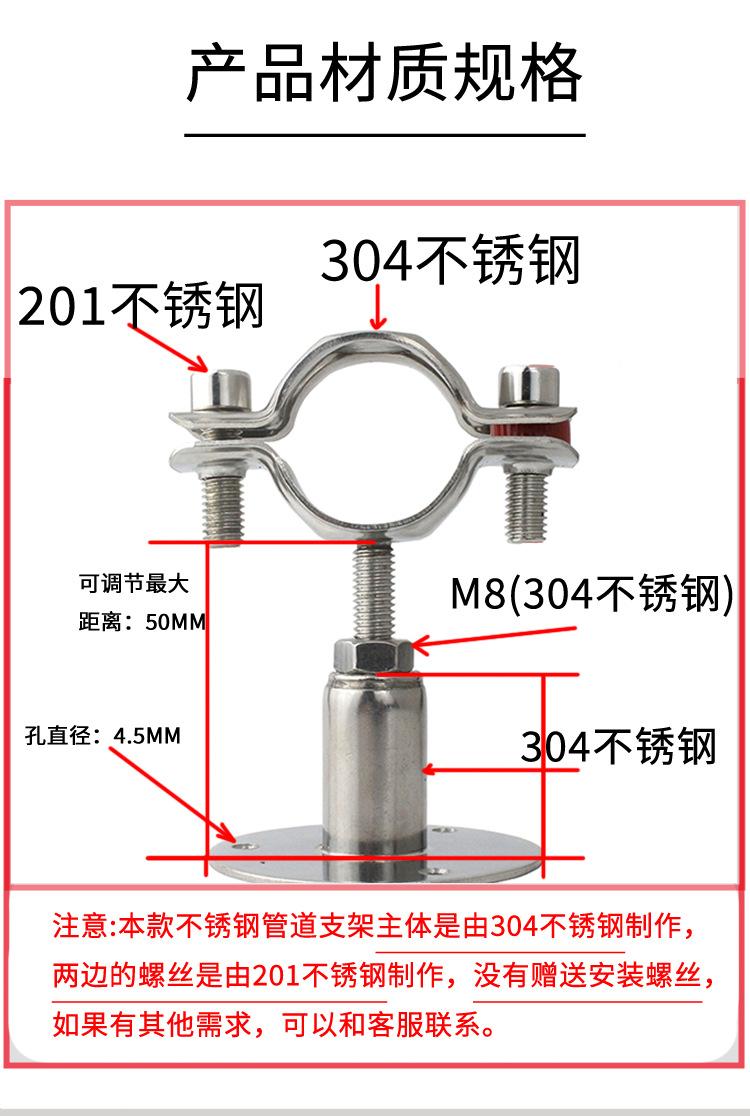 Abrazadera de tubería de agua, abrazadera telescópica ajustable de acero inoxidable 304, abrazadera de fijación para tubería de gas, soporte de tubería de PVC