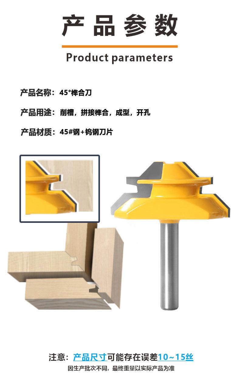 Fresa de mortaja y espiga de 45 grados Yusheng, fresa para carpintería, placa de mortaja y espiga para empalme, cortador de aleación, fresadora de cantos, cortador de líneas, cortador de ángulo recto