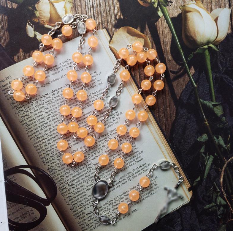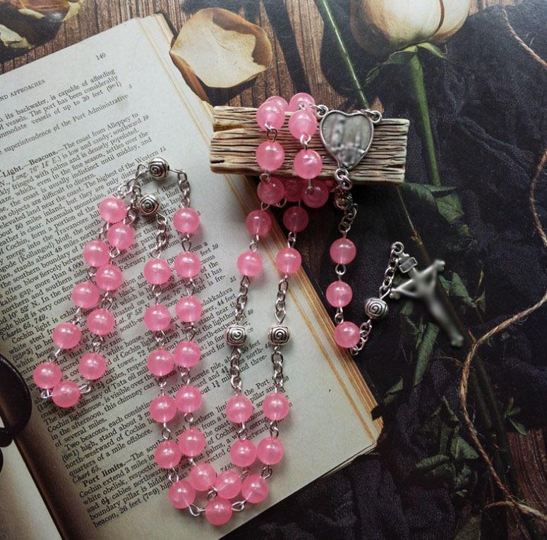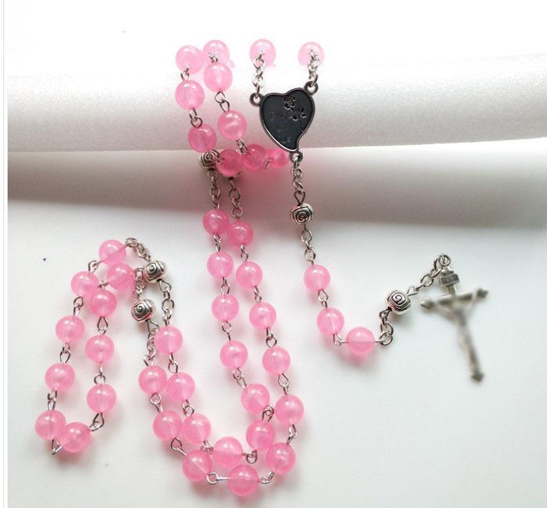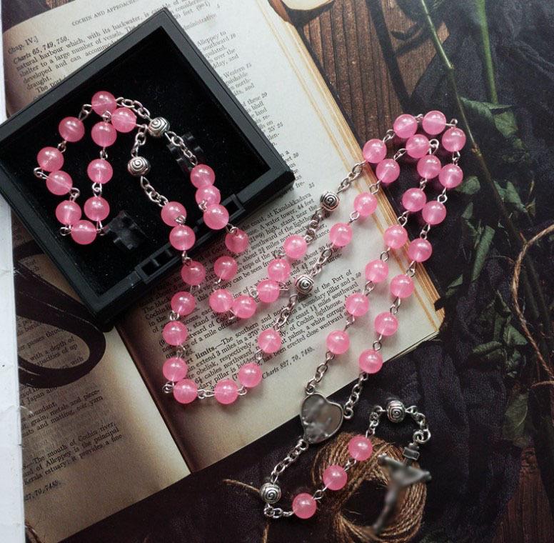 Joyería de AliExpress simple cadena de cuentas luminosas rosas moda largo moda collar con colgante cadena para suéter
