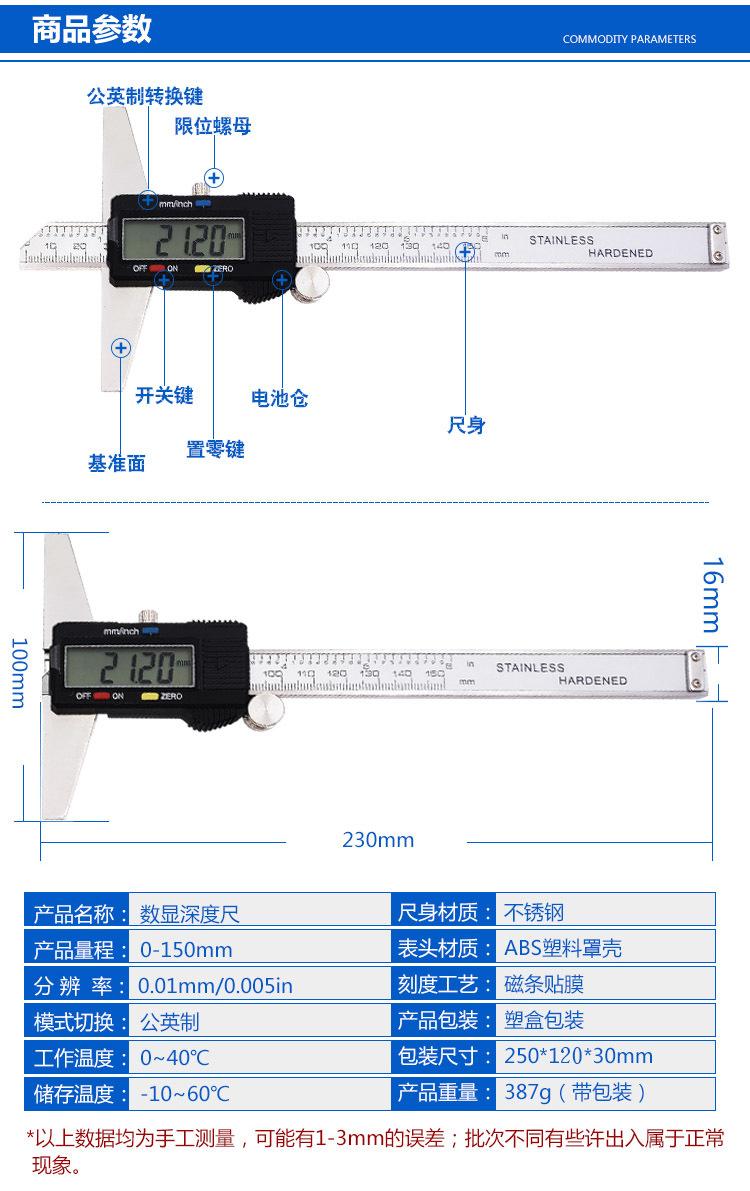 Digital display depth gauge 0-150