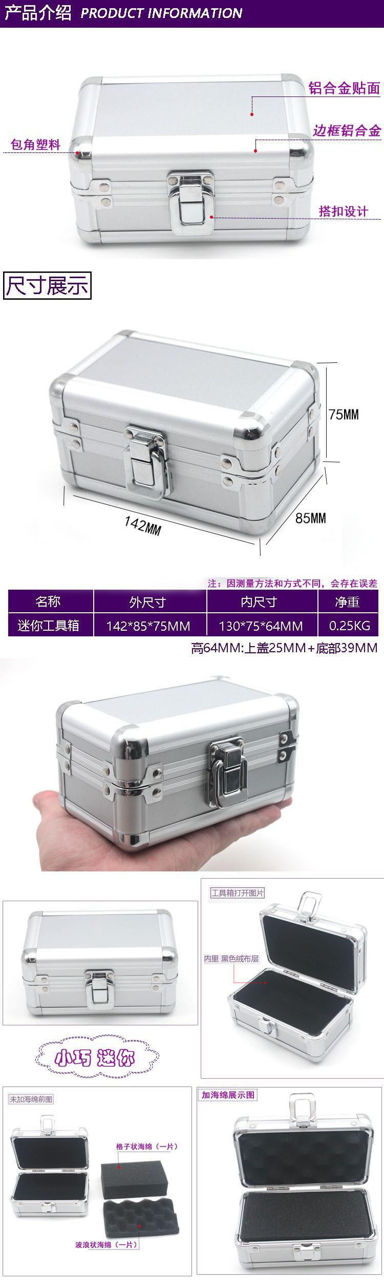 Mini caja de herramientas de hardware, caja de herramientas de aleación de aluminio, caja de almacenamiento, caja de instrumentos, se puede agregar esponja