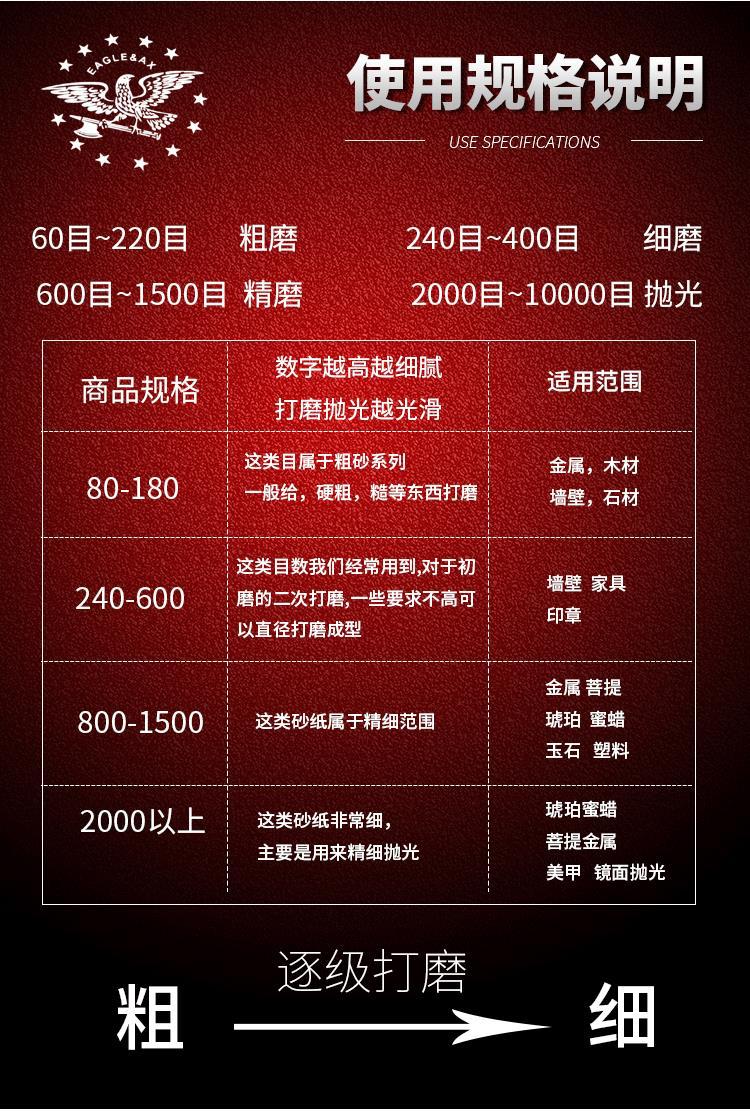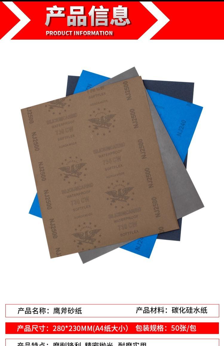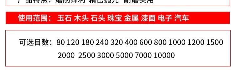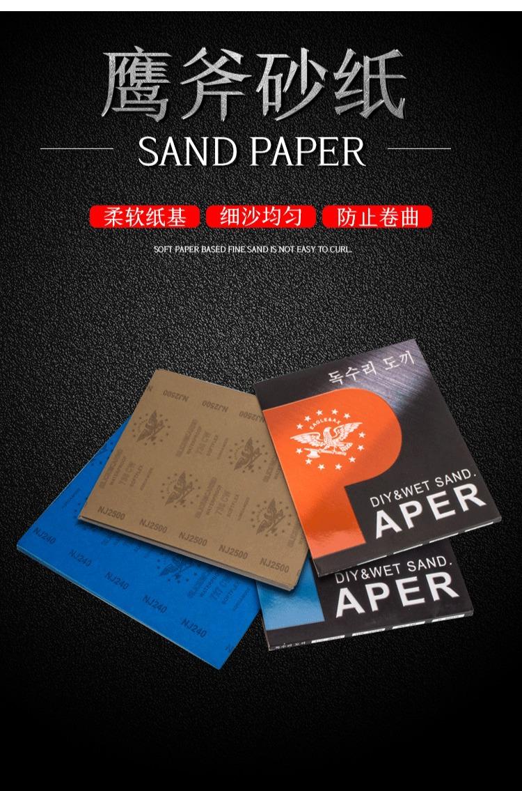 80 mesh (axe sandpaper), 120 mesh (axe sandpaper), 240 mesh (axe sandpaper), 320 mesh (axe sandpaper), 400 mes...