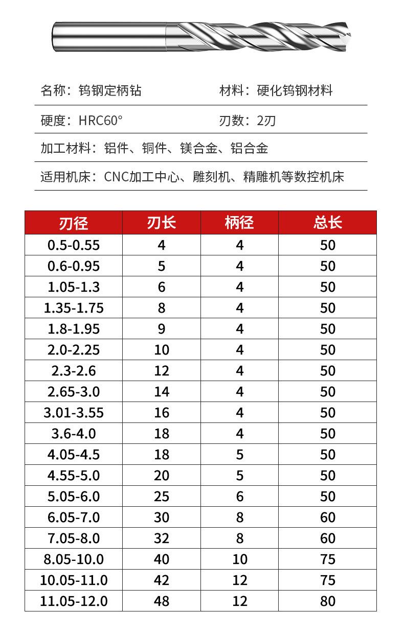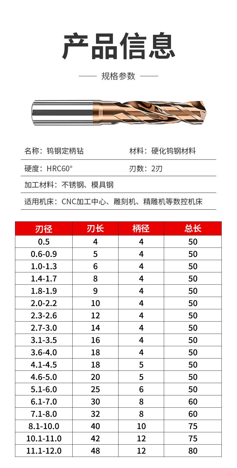 Broca de acero de tungsteno para aluminio D4D5D6D7D8D9D10, vástago fijo, broca helicoidal de carburo de alta dureza para acero inoxidable
