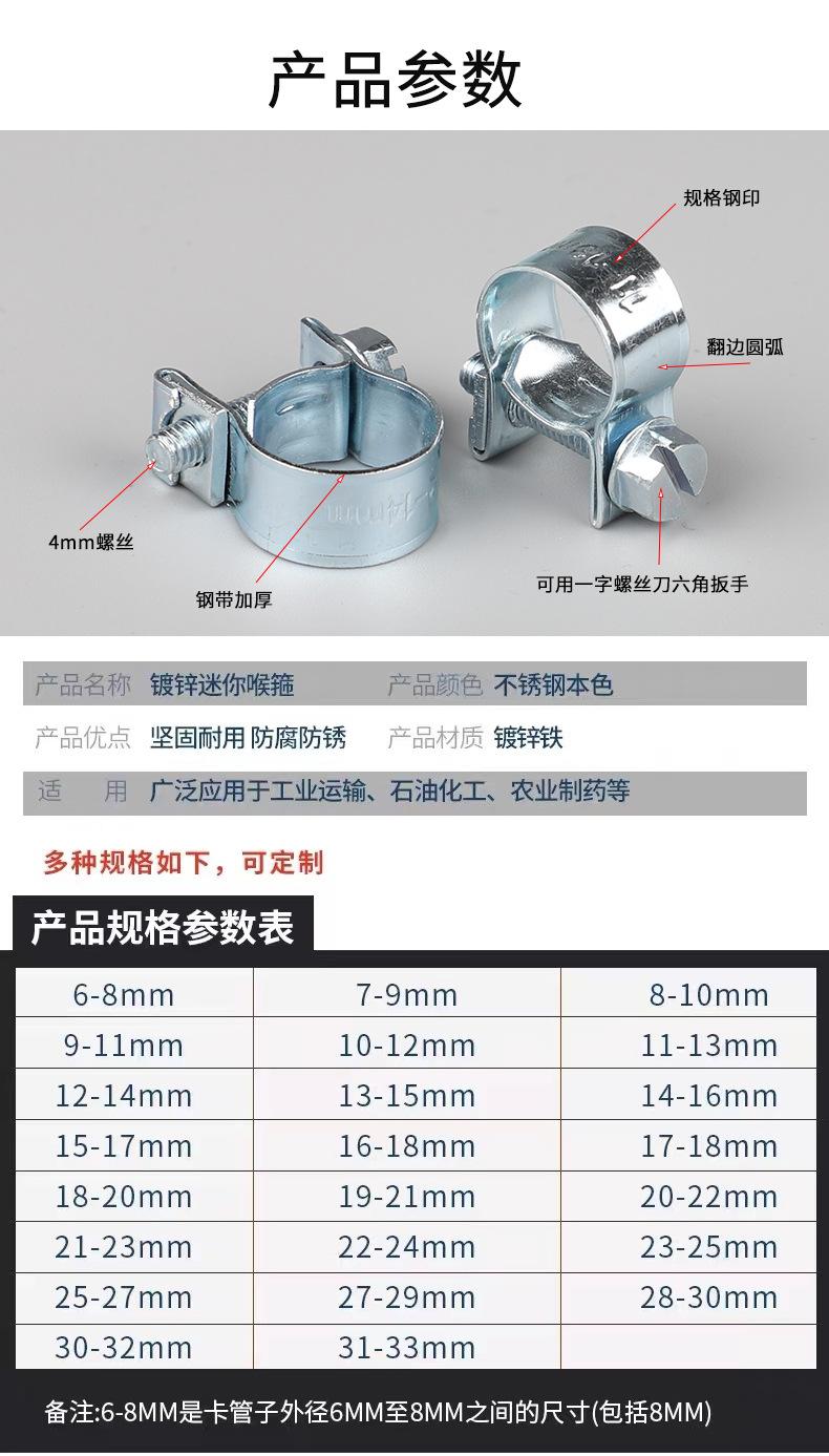 Fabricante de Abrazaderas Mini Abrazadera Transfronteriza Superventas Pequeña Abrazadera Fuerte Hierro Galvanizado Mini Abrazadera de Manguera