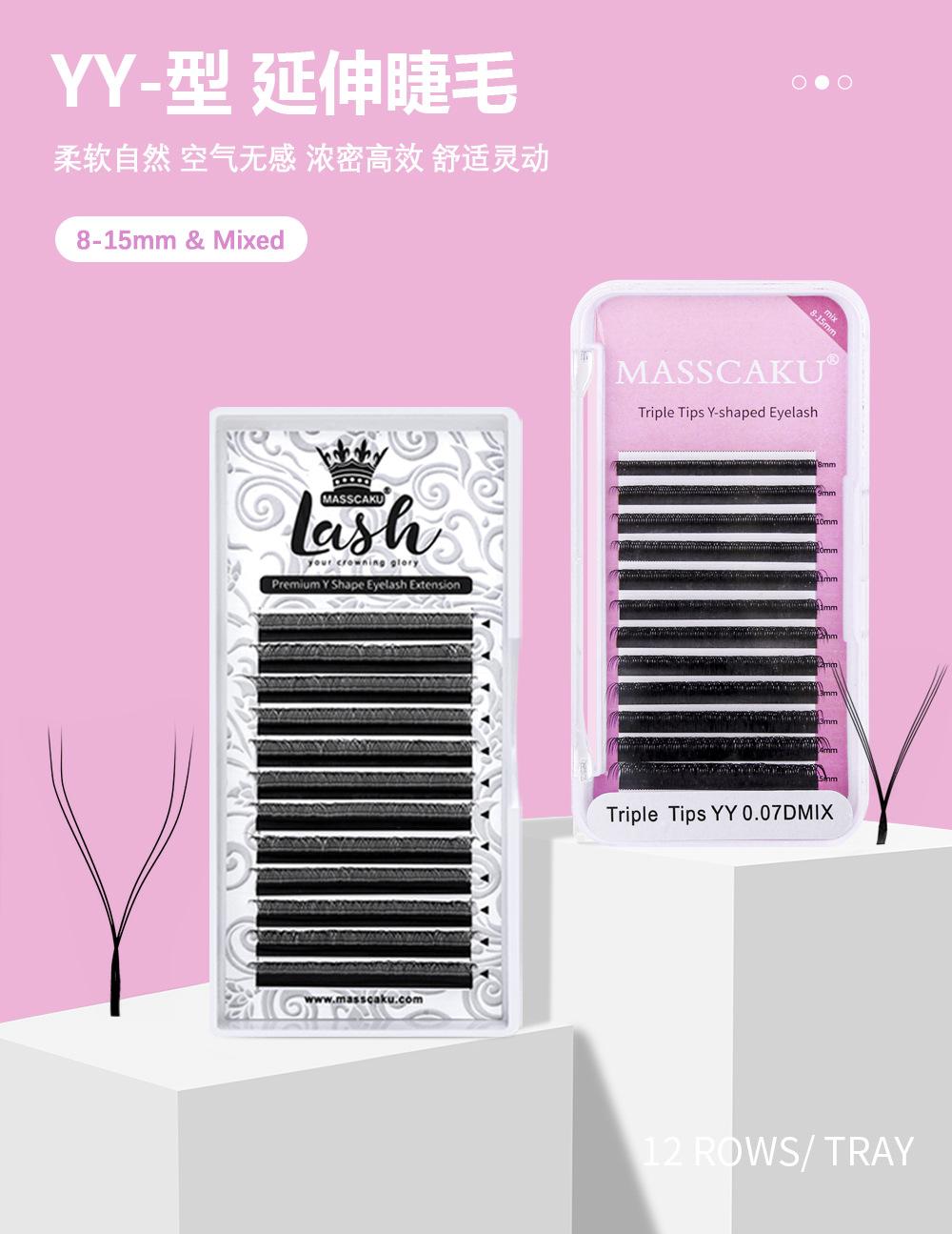 Venta al por mayor de fábrica en stock yy pestañas postizas suaves y cómodas 0.05/0.07 plantación injerto pestañas en forma de Y