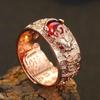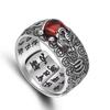 Anillo Pixiu de la suerte con transferencia de plata tailandesa retro para hombre y mujer, con piedra de granada dorada, apertura con mentalidad de seis palabras y marea.