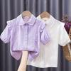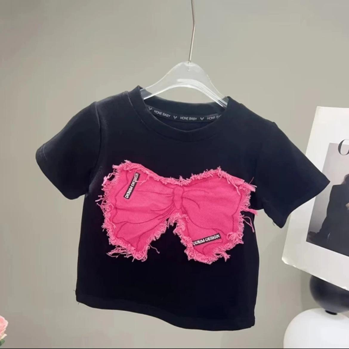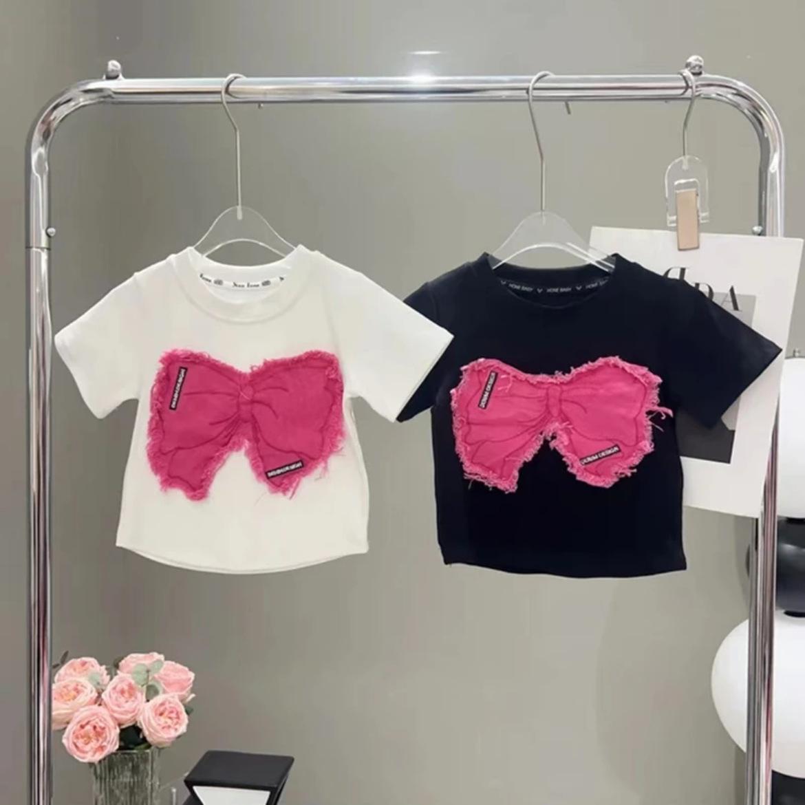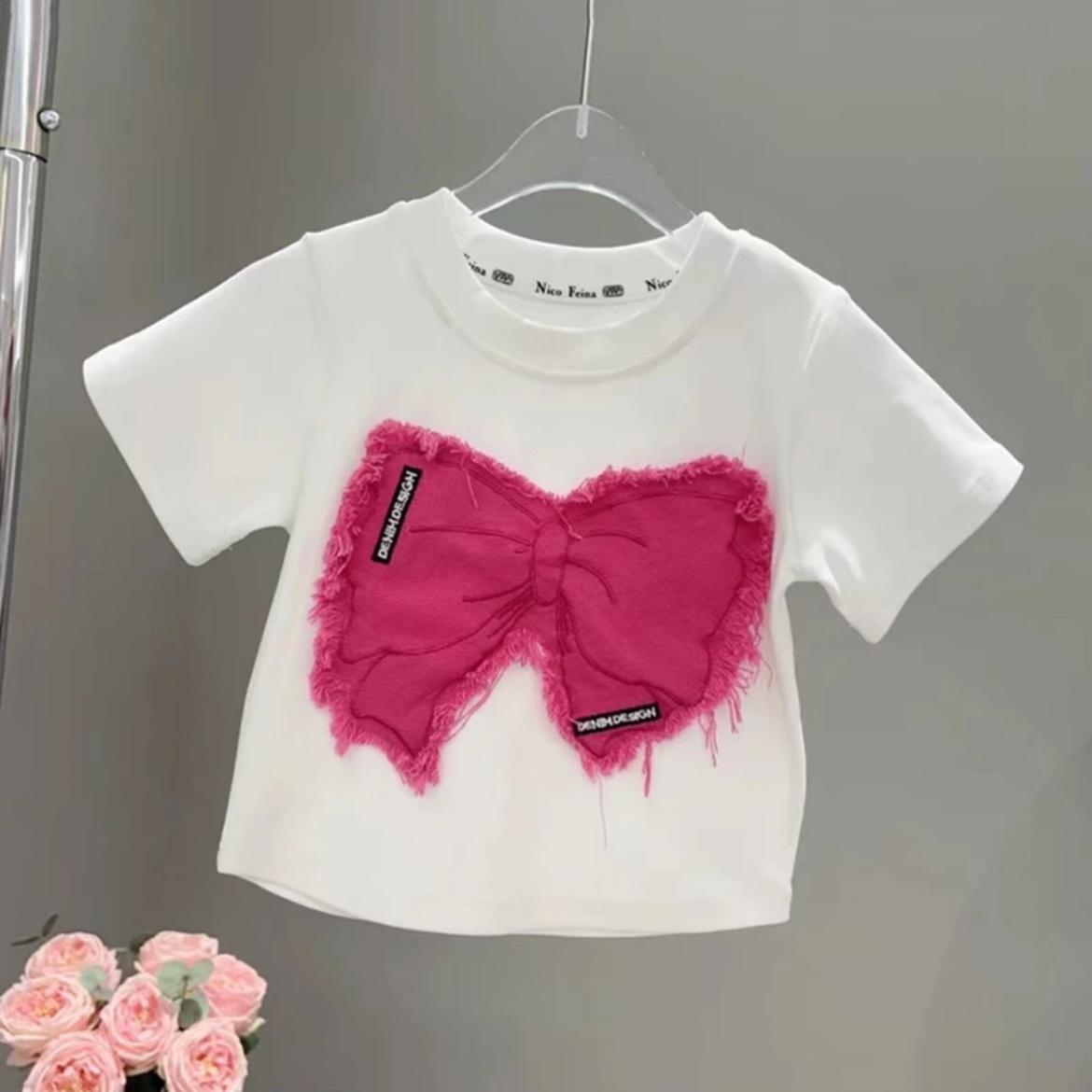 Camiseta de verano de manga corta para niños nueva moda casual versátil niñas lazo top de manga corta marea 0088A060