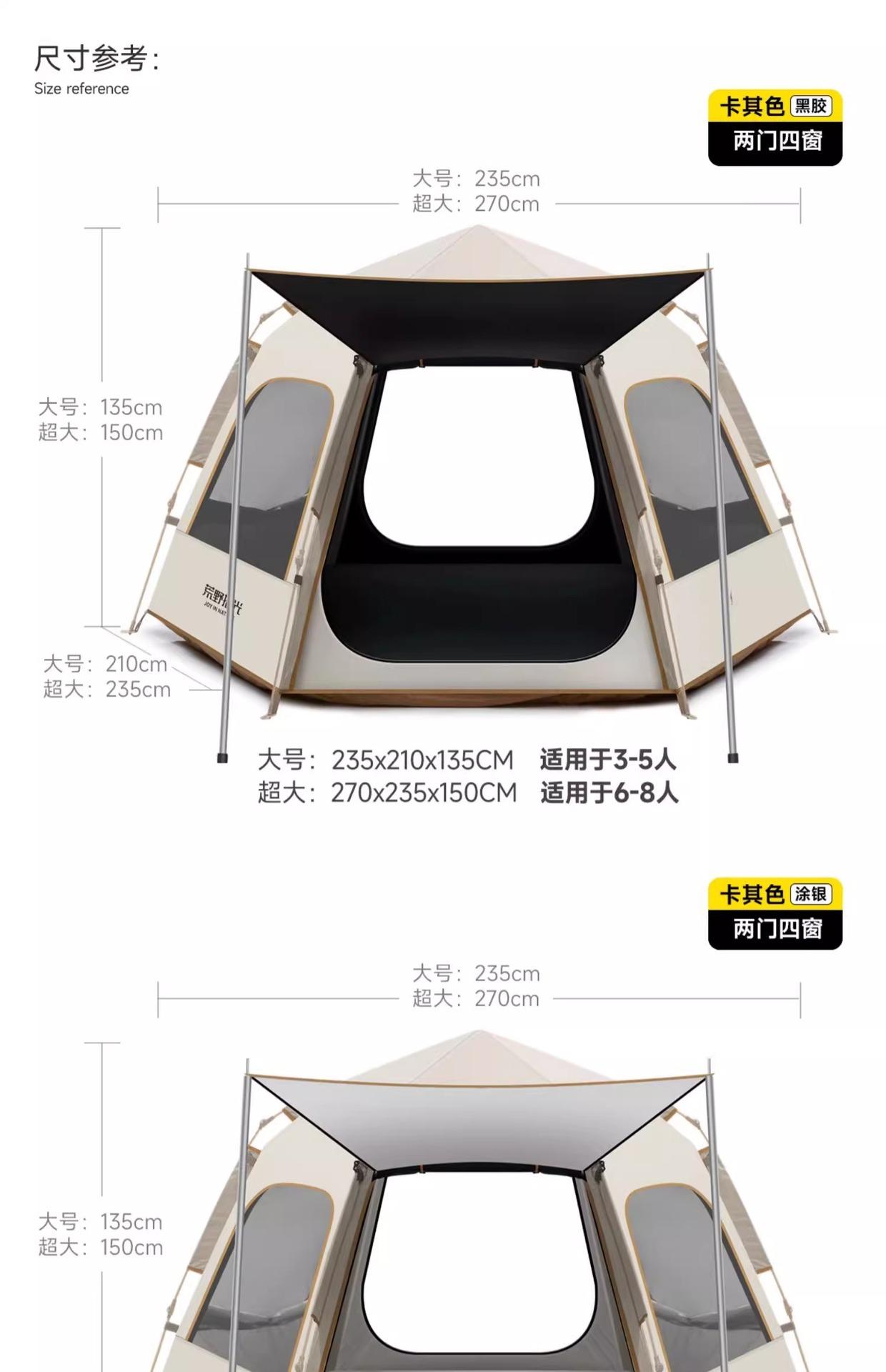 5-8 people apricot rice white [silver glue] tent + moisture-proof mat