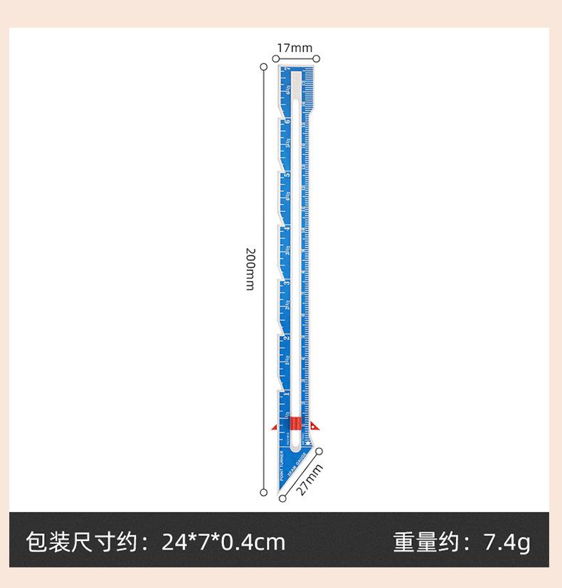Seam fixed edge aluminum ruler 19.5*1.7cm-blue