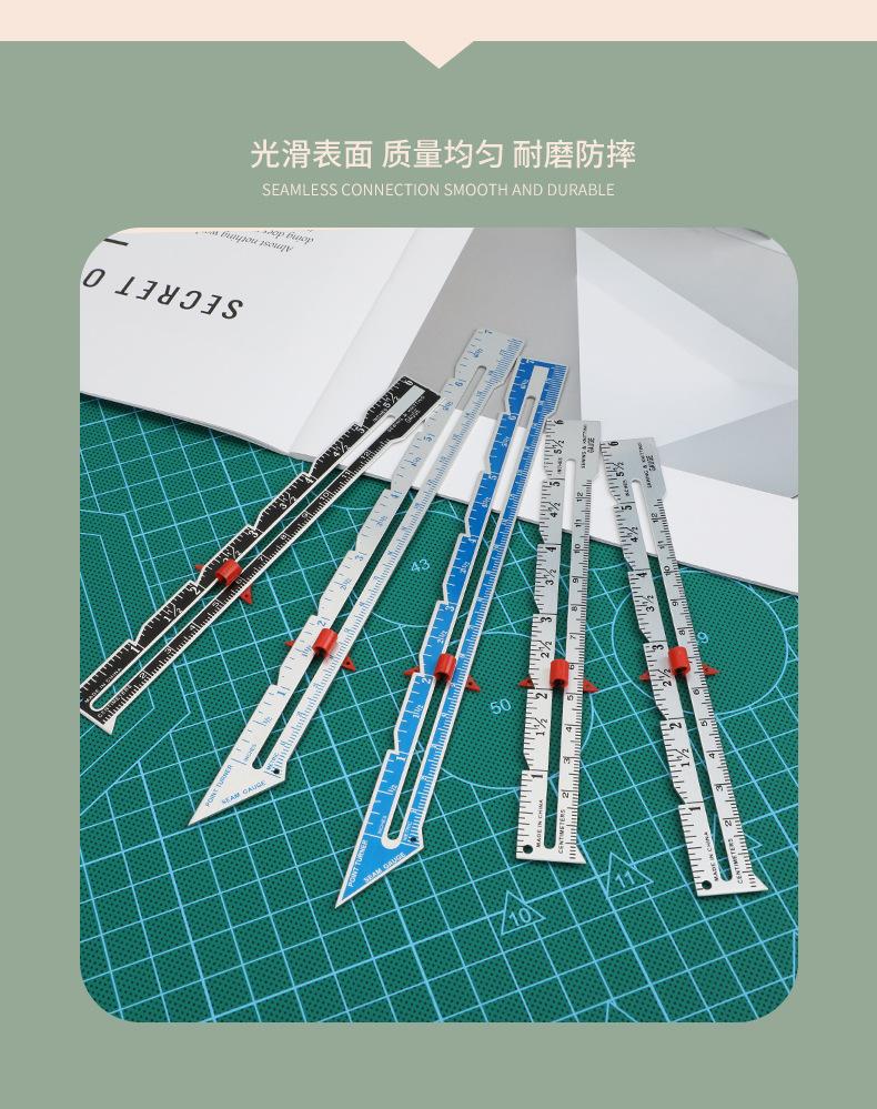 Regla de bricolaje hecha a mano, regla de ajuste de borde de costura de aluminio, serie 6 T6, regla de patchwork hecha a mano de aluminio, margen de medición de posicionamiento