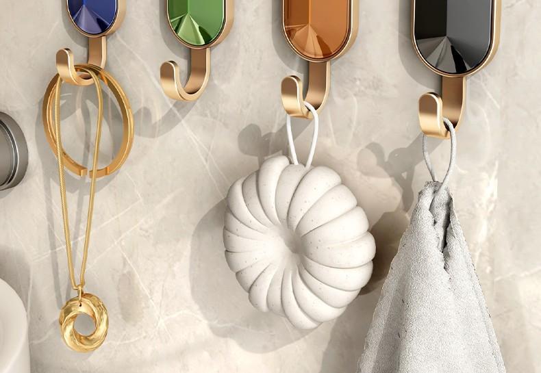 Gancho adhesivo ligero de lujo para colgar ropa, sin perforaciones, resistente y de gran capacidad, para puerta, pared, cocina y baño.