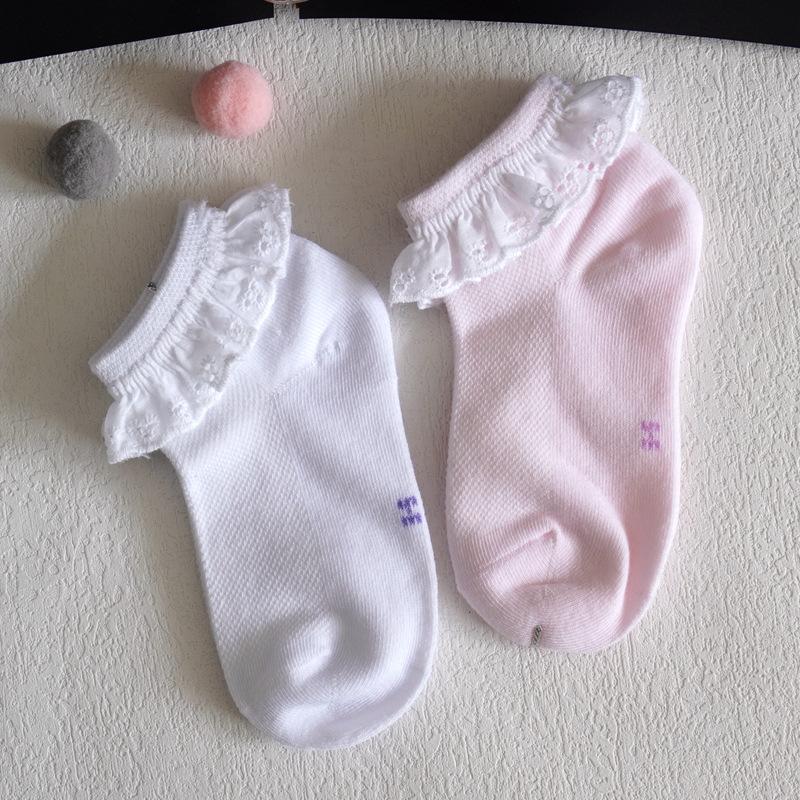 Calcetines cortos de encaje para niñas de primavera y verano, calcetines de malla para niñas, calcetines de princesa, calcetines blancos de algodón para barcos, calcetines de tela con encaje fino.