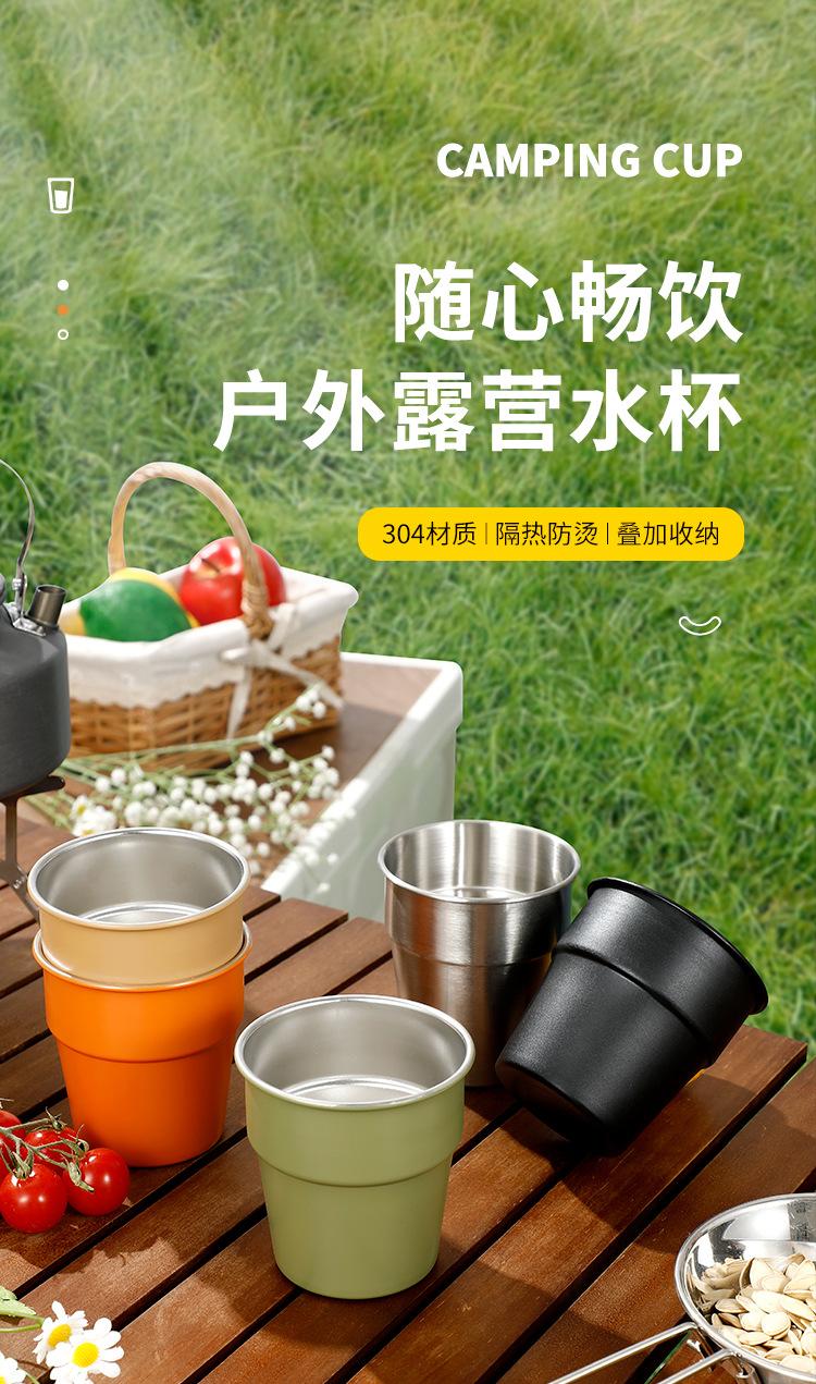 Taza para exteriores de acero inoxidable 304, estilo picnic, camping, montañismo, simple, de una sola capa, para beber cerveza y café.