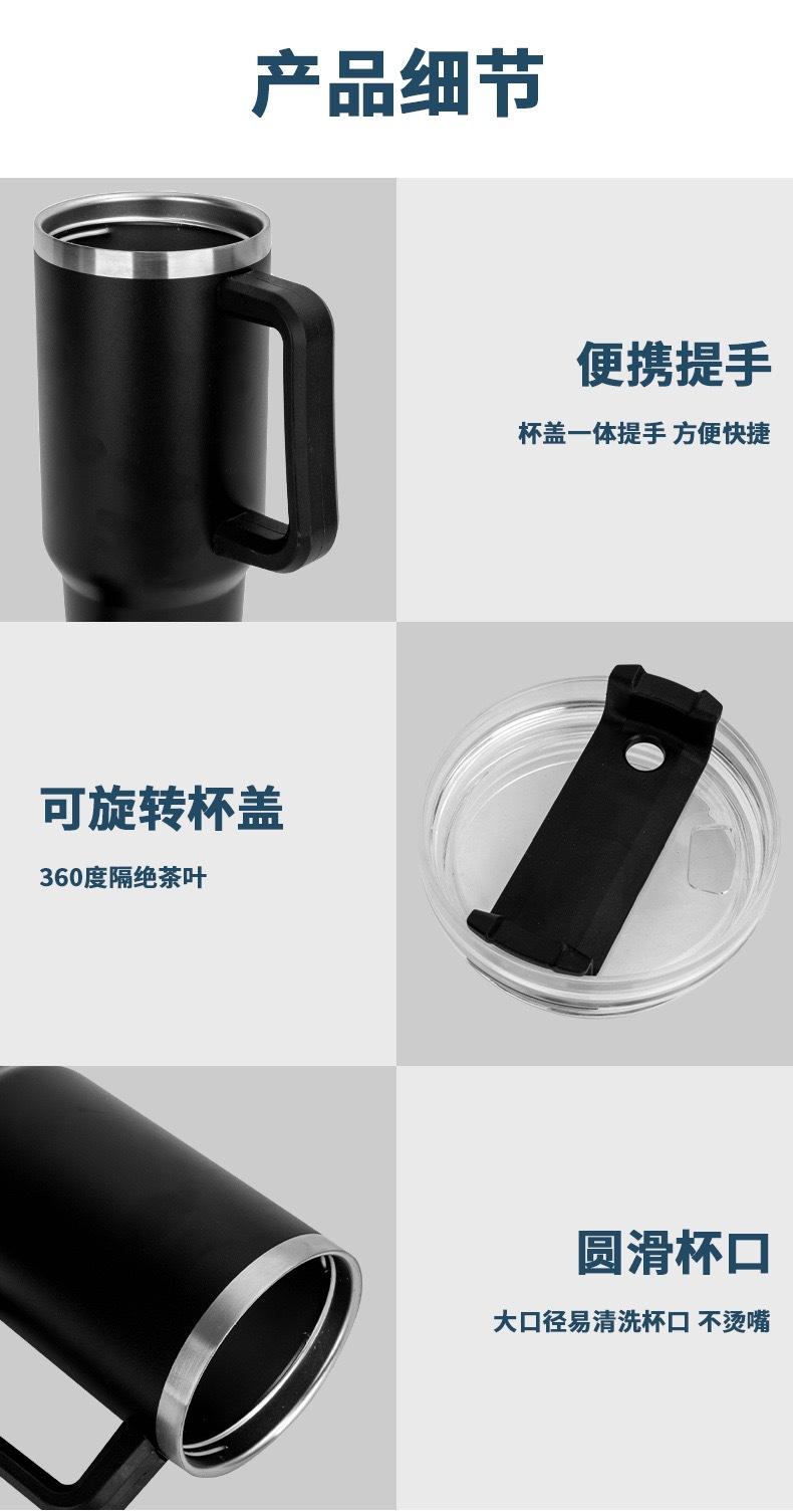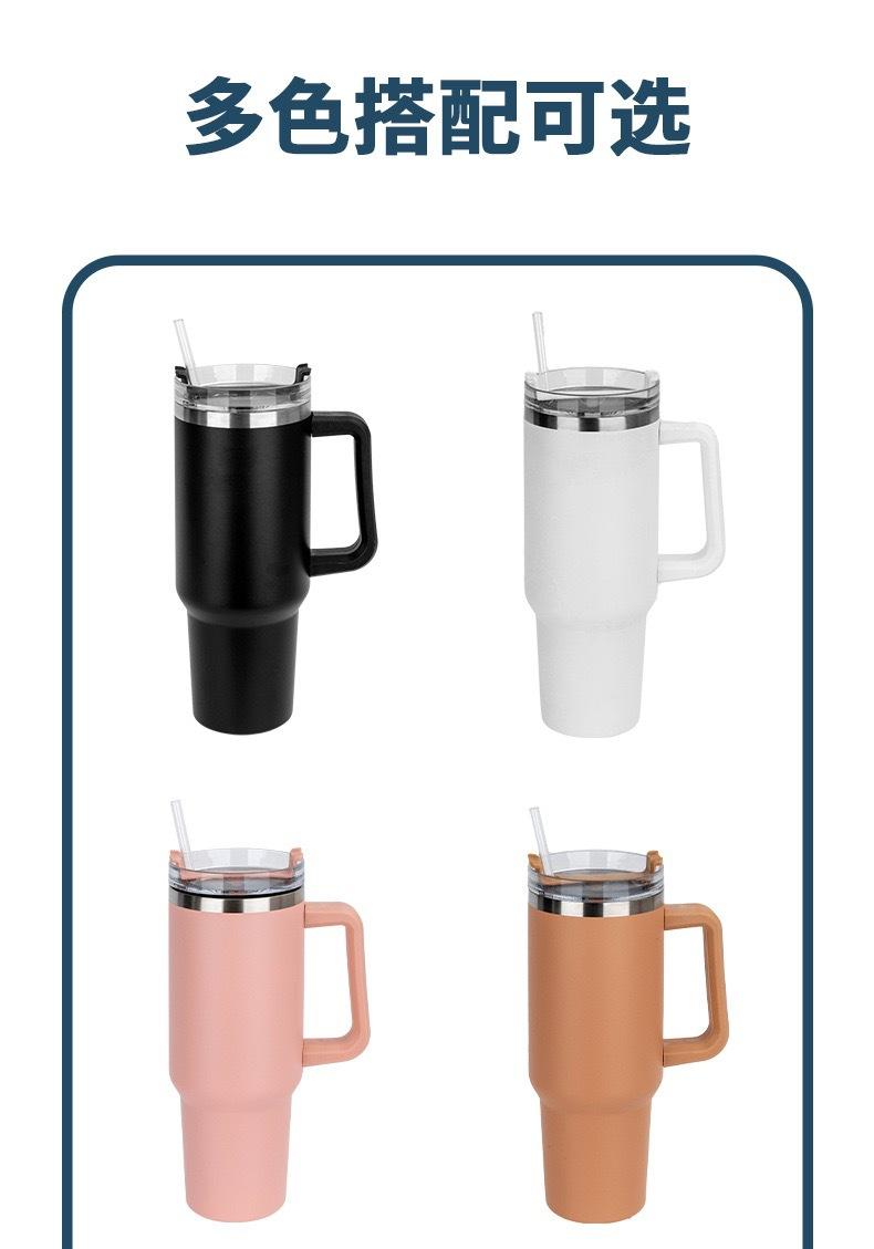 Suministro Directo Transfronterizo Gran Capacidad Acero Inoxidable 304 Vaso para Hielo Mango de Plástico Rociado Vaso para Coche 40oz