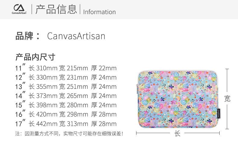 Canvasartisan impresión 11 bolsa para computadora 12 bolsa plana 13 funda protectora 14 pulgadas 15 bolsa interior