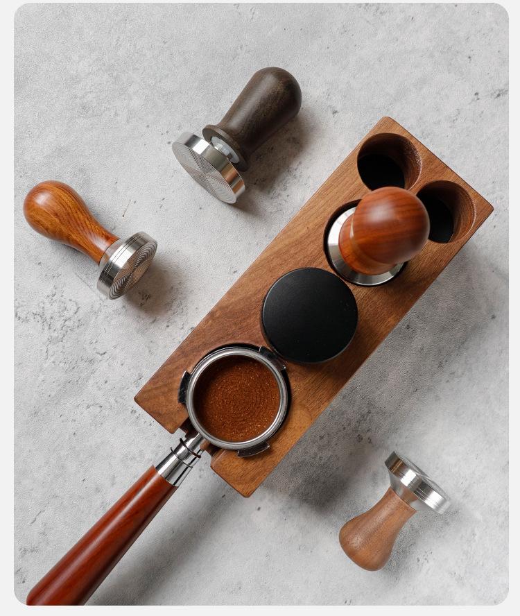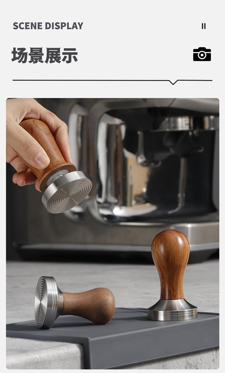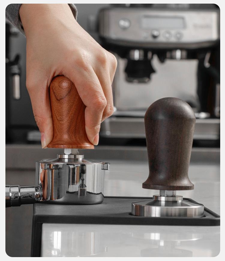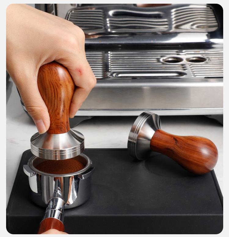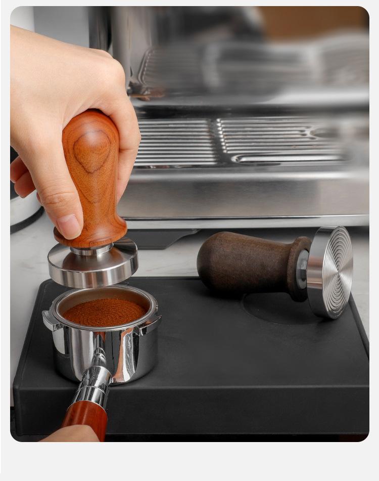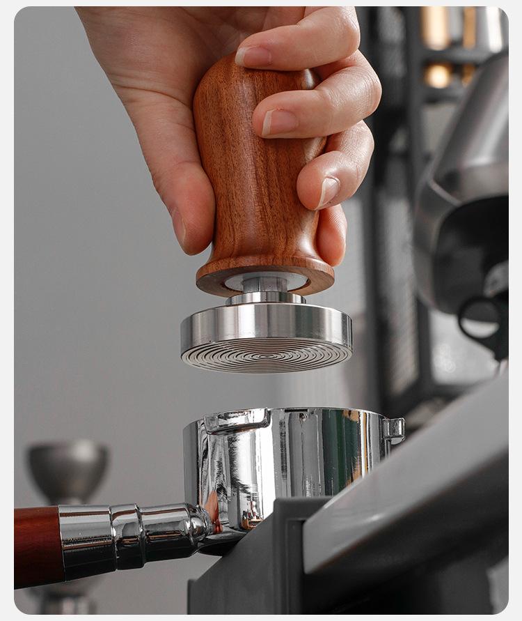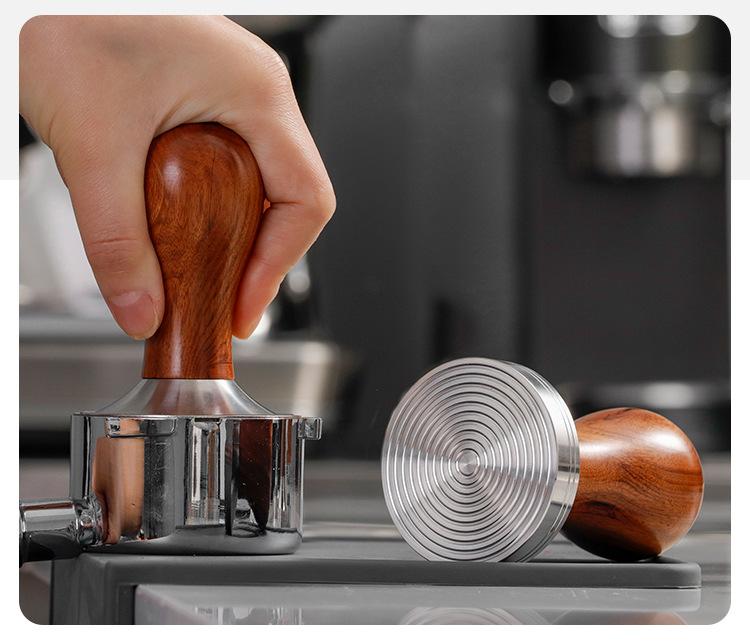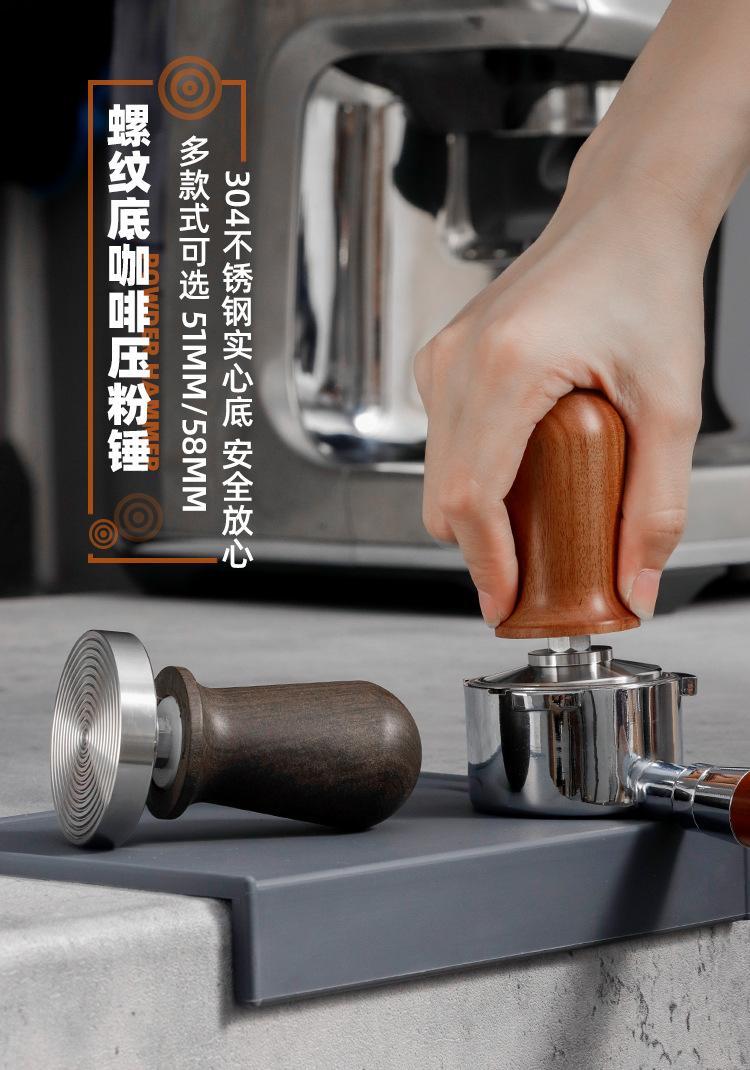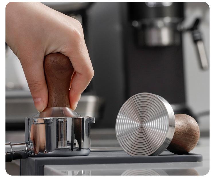 Martillo prensador de polvo de acero inoxidable 58mm Máquina de café semiautomática prensa de llenado de fondo roscado mango de madera dispositivo de prensado constante de polvo para máquina de café