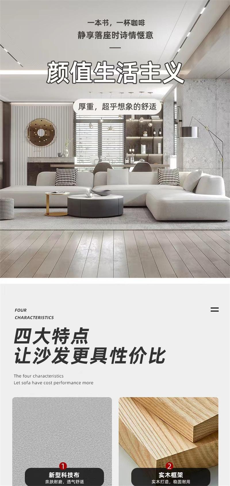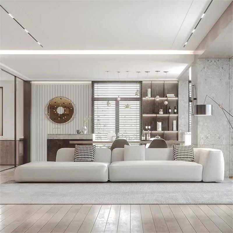 Sofá nórdico simple, moderno, italiano, minimalista, ligero, de lujo, en forma de L, para sala de estar, oficina, recepción, con tecnología de tela combinada.
