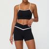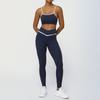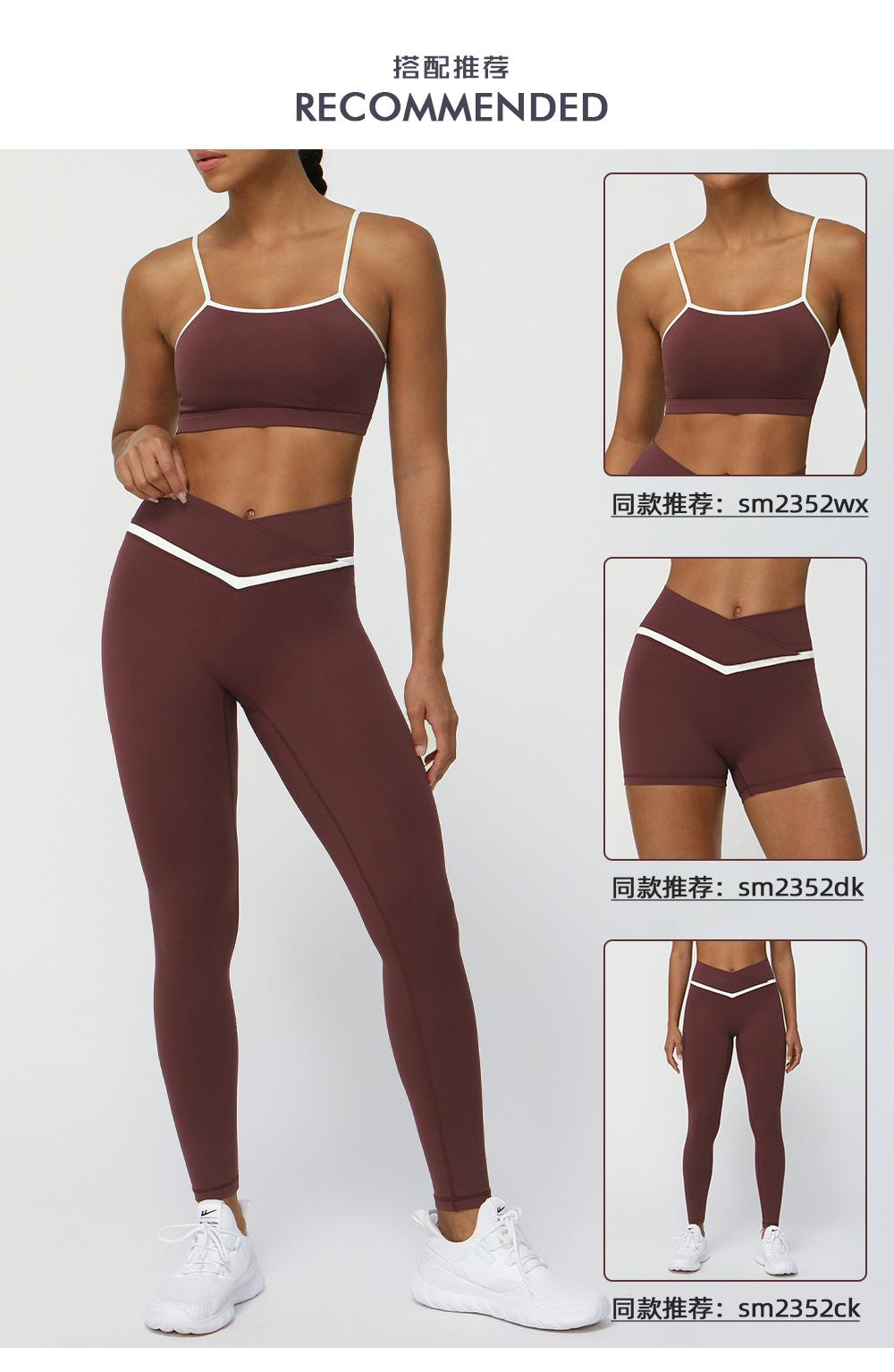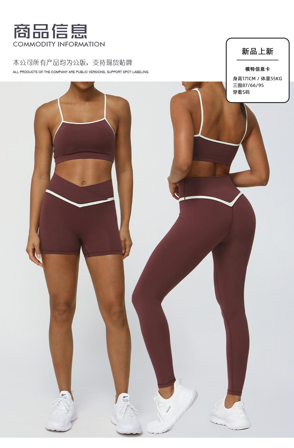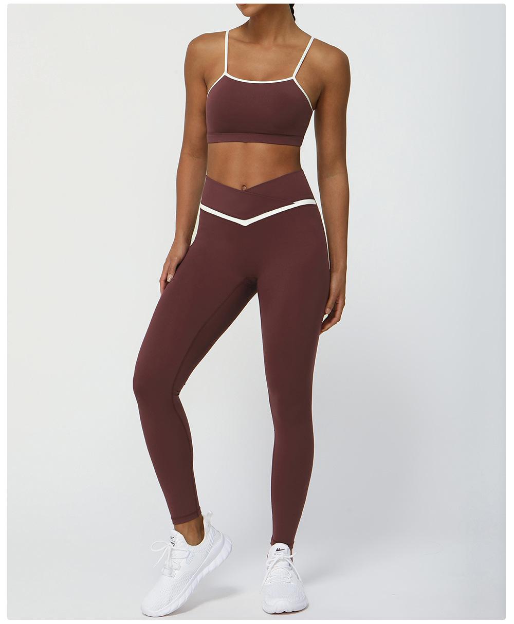 Traje de ropa de yoga de color de contraste nuevo transfronterizo, levantador de cadera desnudo, traje de ropa deportiva de ocio para fitness, pantalones de yoga de cintura cruzada