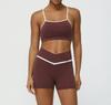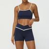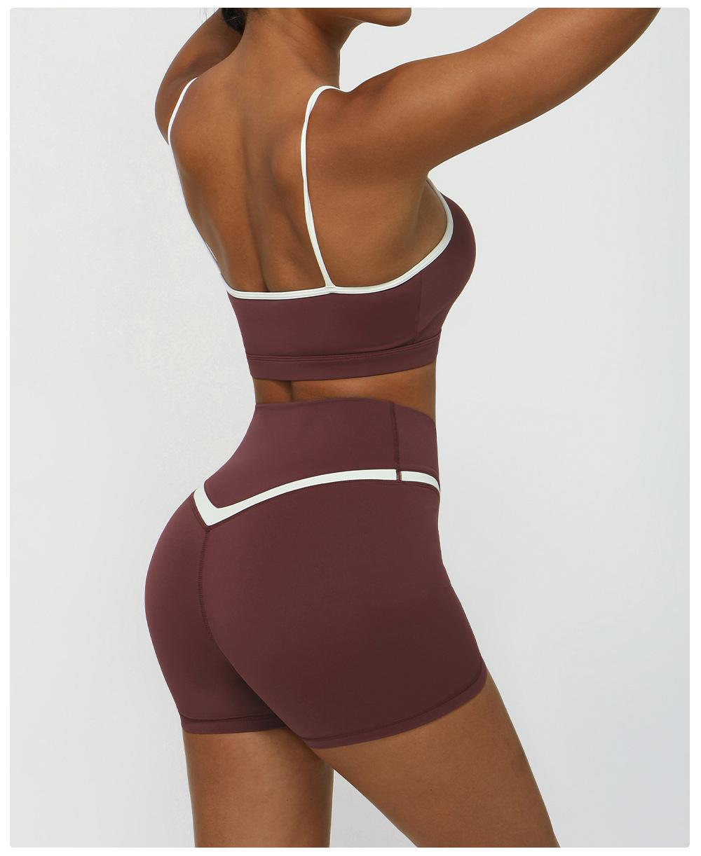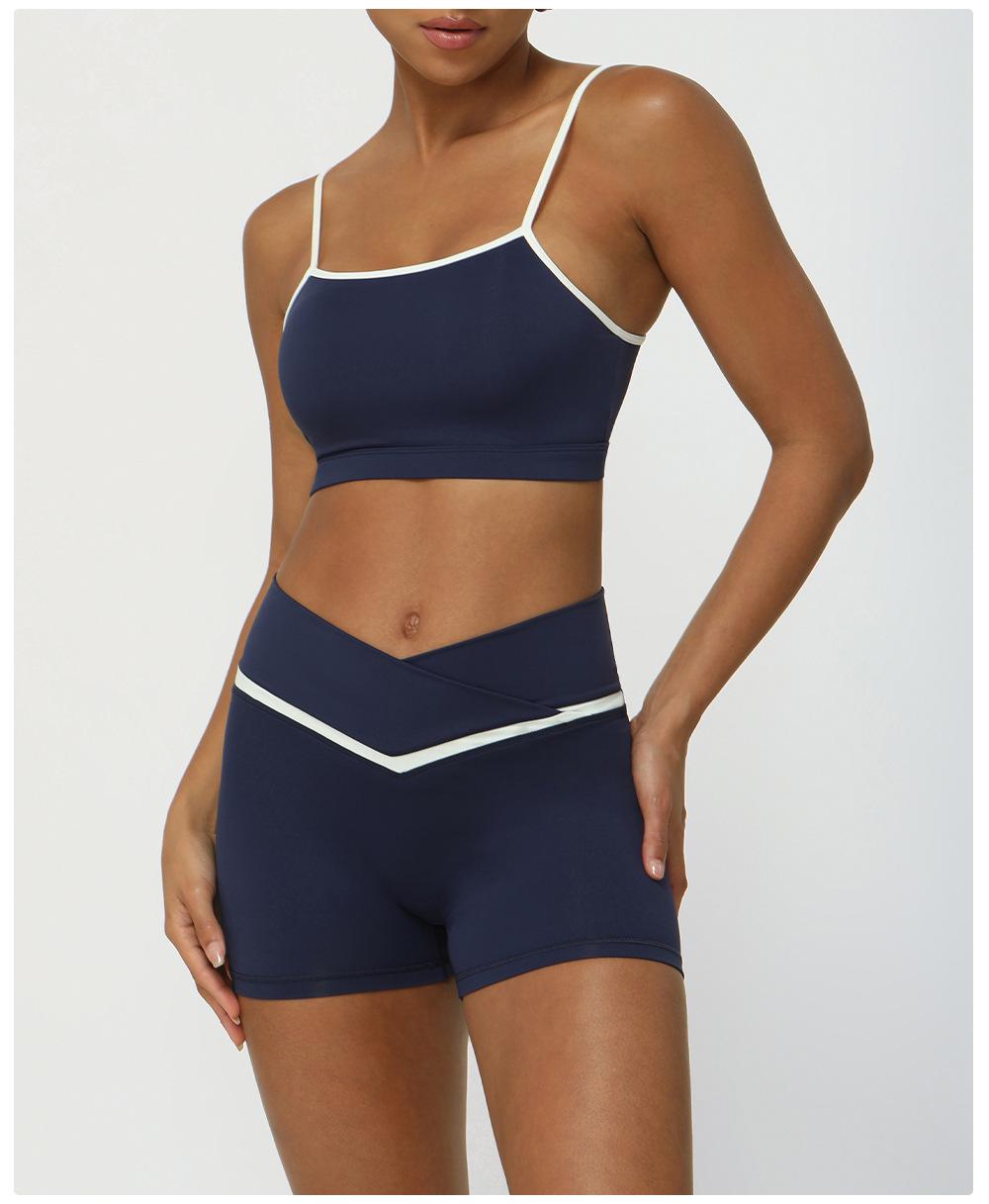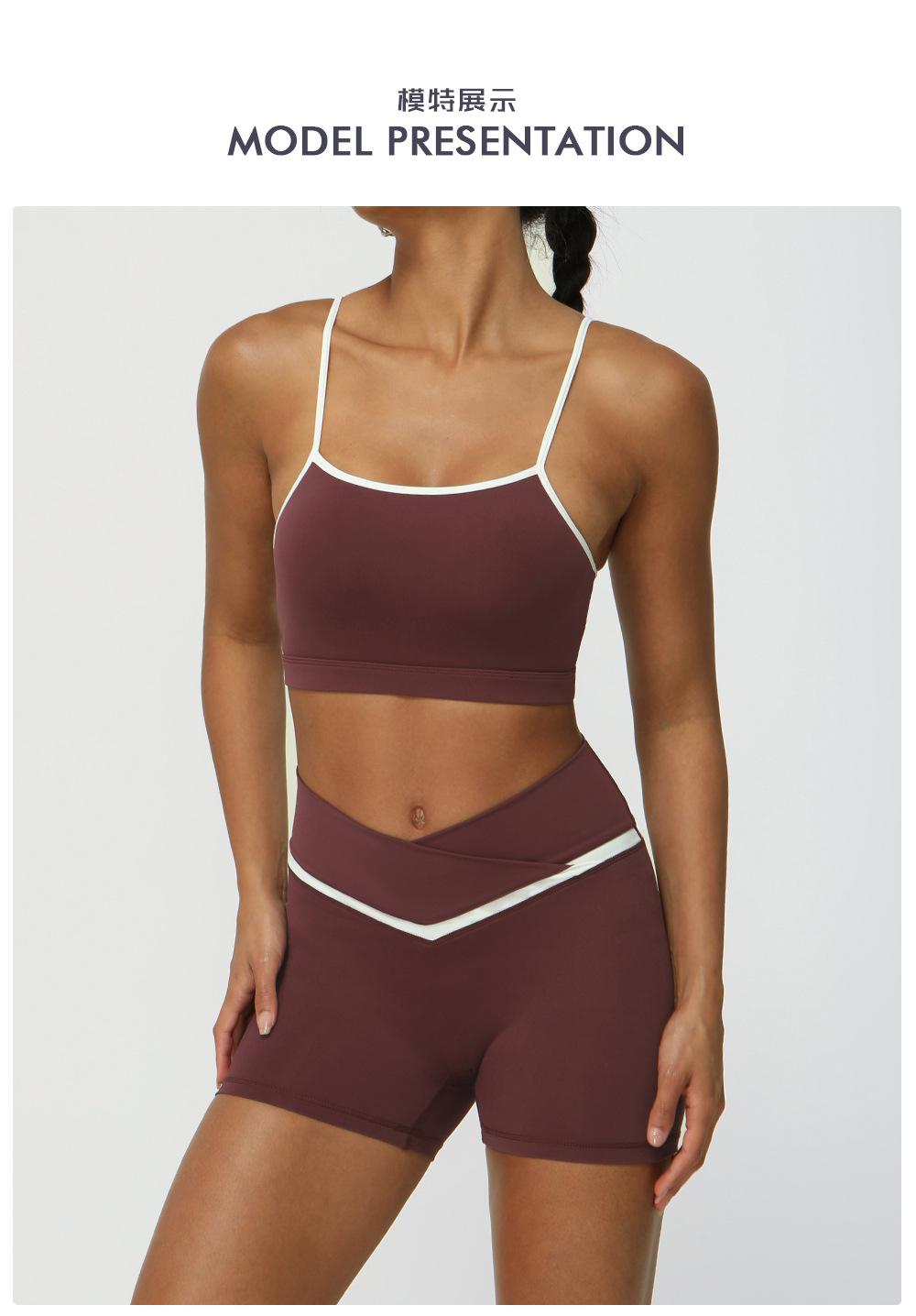 Traje de ropa de yoga de color de contraste nuevo transfronterizo, levantador de cadera desnudo, traje de ropa deportiva de ocio para fitness, pantalones de yoga de cintura cruzada