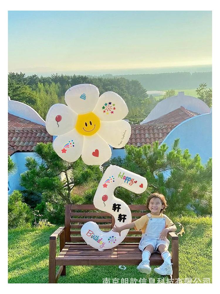Oversized Smiley Daisy Balloon [sticker]], Oversized Daisy [sticker]], Three-layer candle cake balloon, Color ...