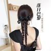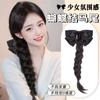 Peluca Cola de Caballo con Pinza para Mujer Lazo Negro Trenza Torcida Peluca China Media Peluca Cola de Caballo