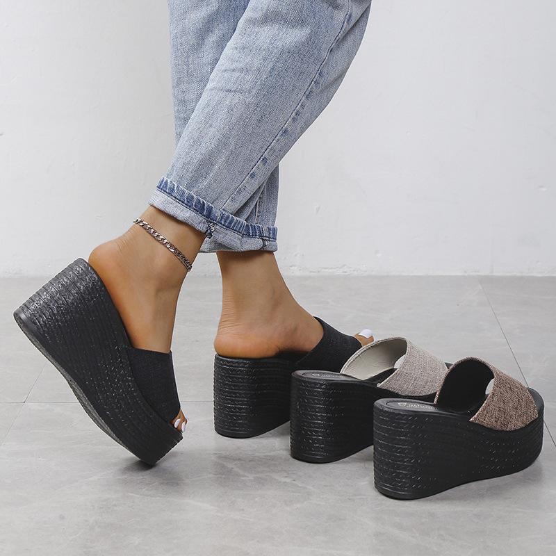 Comercio exterior transfronterizo nuevo estilo cubierta de tela tacón de cuña de plataforma para exterior de verano sandalias de playa para mujer