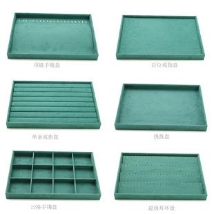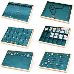 Bandeja de madera maciza para joyas, estante para joyas, bandeja de madera maciza de microfibra verde para joyas, exhibición de joyas de estilo europeo, almacenamiento de joyas