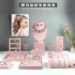 Expositor de joyas, expositor de franela rosa, para collares, anillos y joyas, accesorios de alta gama.