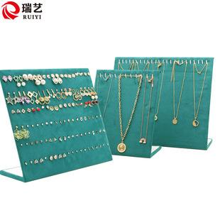Expositor de joyas de microfibra verde, para pendientes, collares, pulseras, anillos, pendientes, joyería retro.