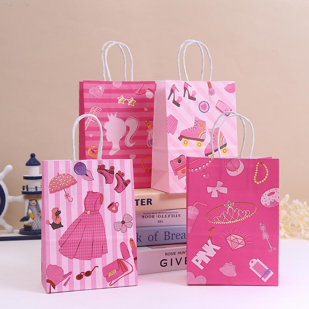 Bolsa de papel para el día de la niña, bolsa de compras impresa, bolsa de embalaje, bolsa de papel con logotipo, bolsa de regalo con dibujos animados, bolsa de embalaje de papel Kraft