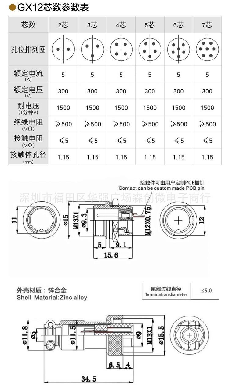 GX12-2 core male, GX12-3 core male, GX12-4 core male, GX12-5 core male, GX12-6 core male, GX12-2 core female h...