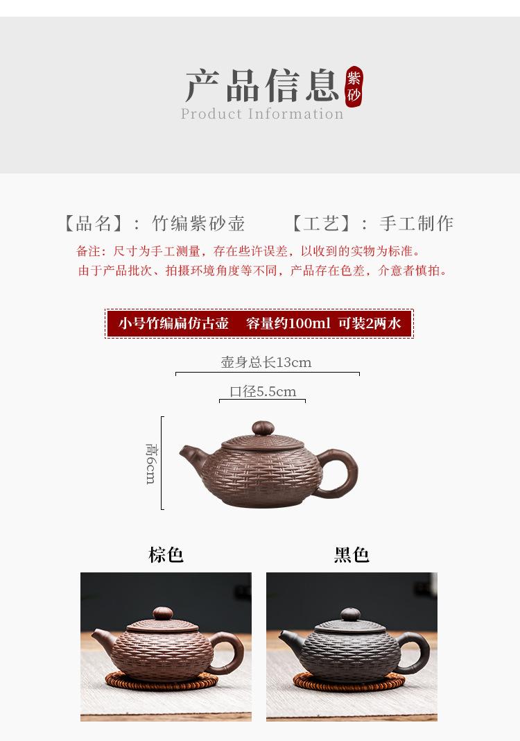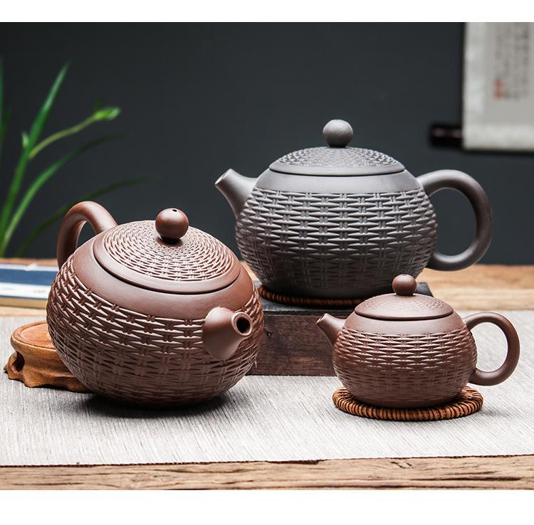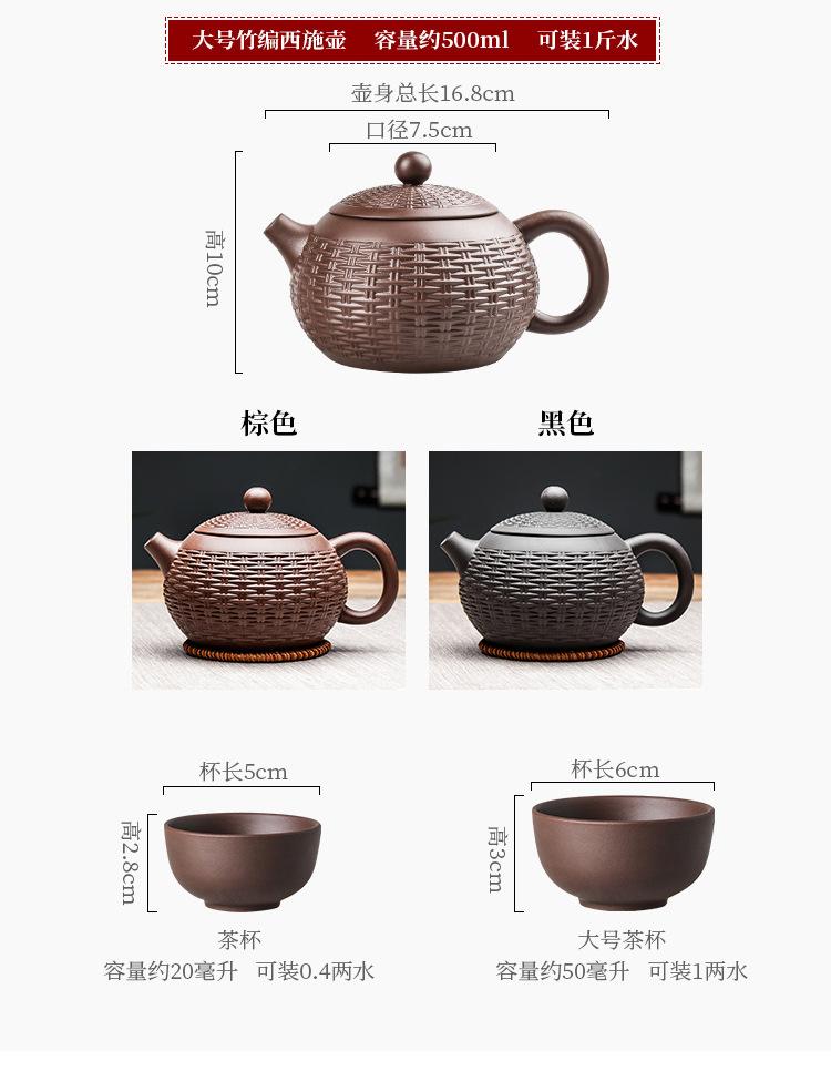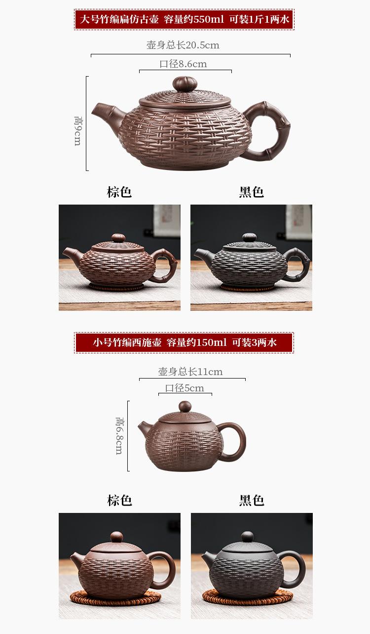 Brown large bamboo Xi Shi pot (500 ml), Black large bamboo Xi Shi pot (500 ml), Brown large bamboo flat antiqu...