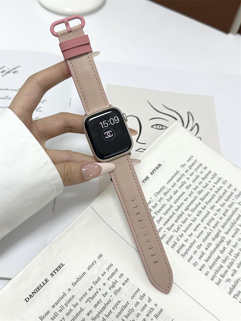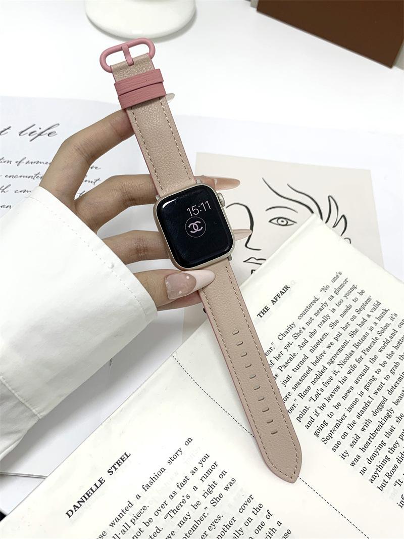Cuero Colorblock Ovalado para Apple Watch Apple Watch con iWatch9 Reloj con S8 Nicho SE67