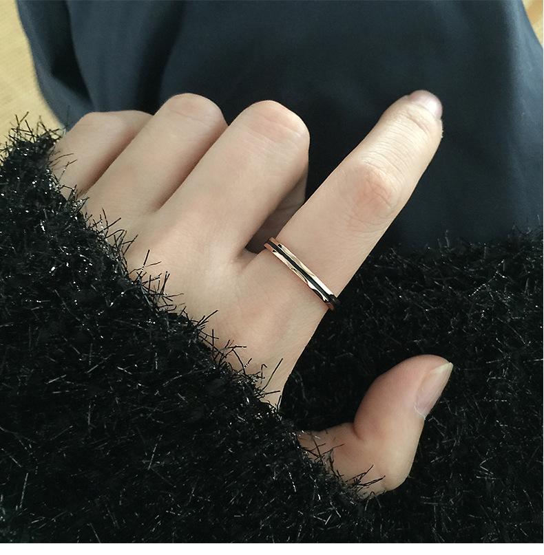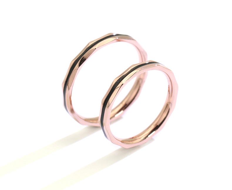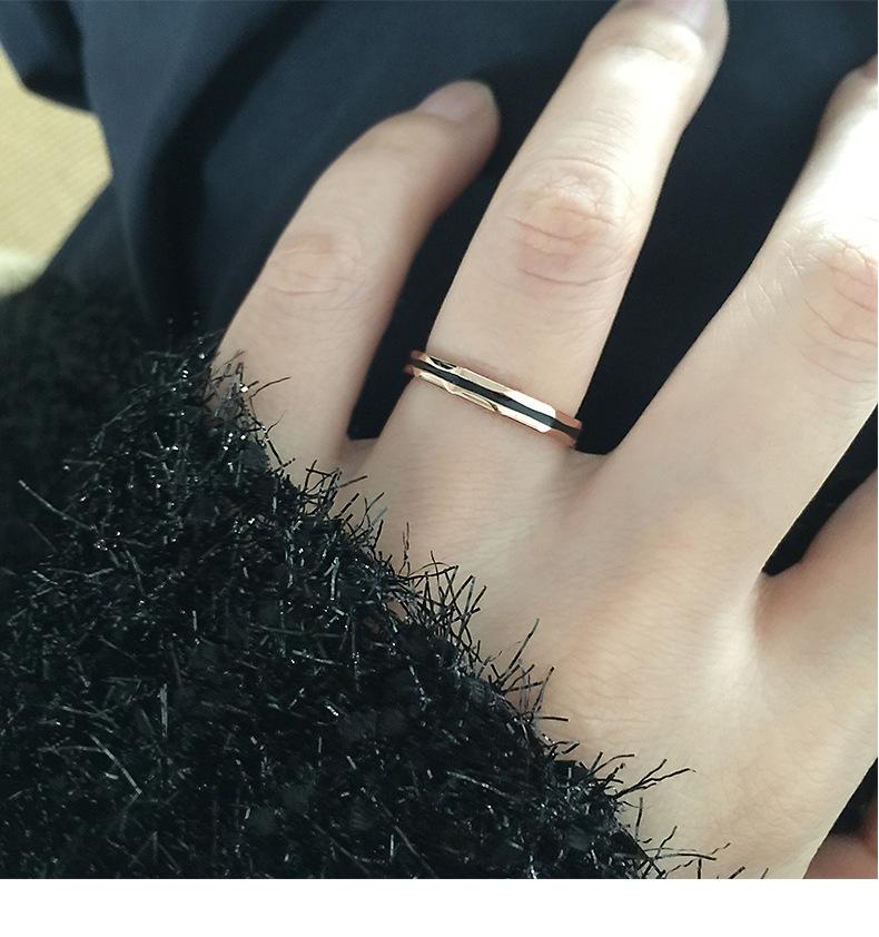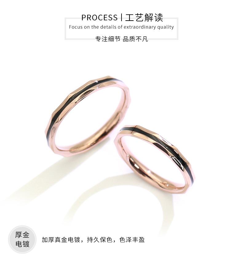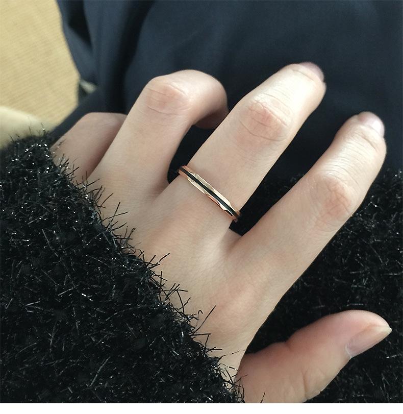 Anillo coreano elegante personalizado de flor diamante acero titanio chapado en oro goteo de pegamento negro anillo de cola anillo de dedo moderno de moda
