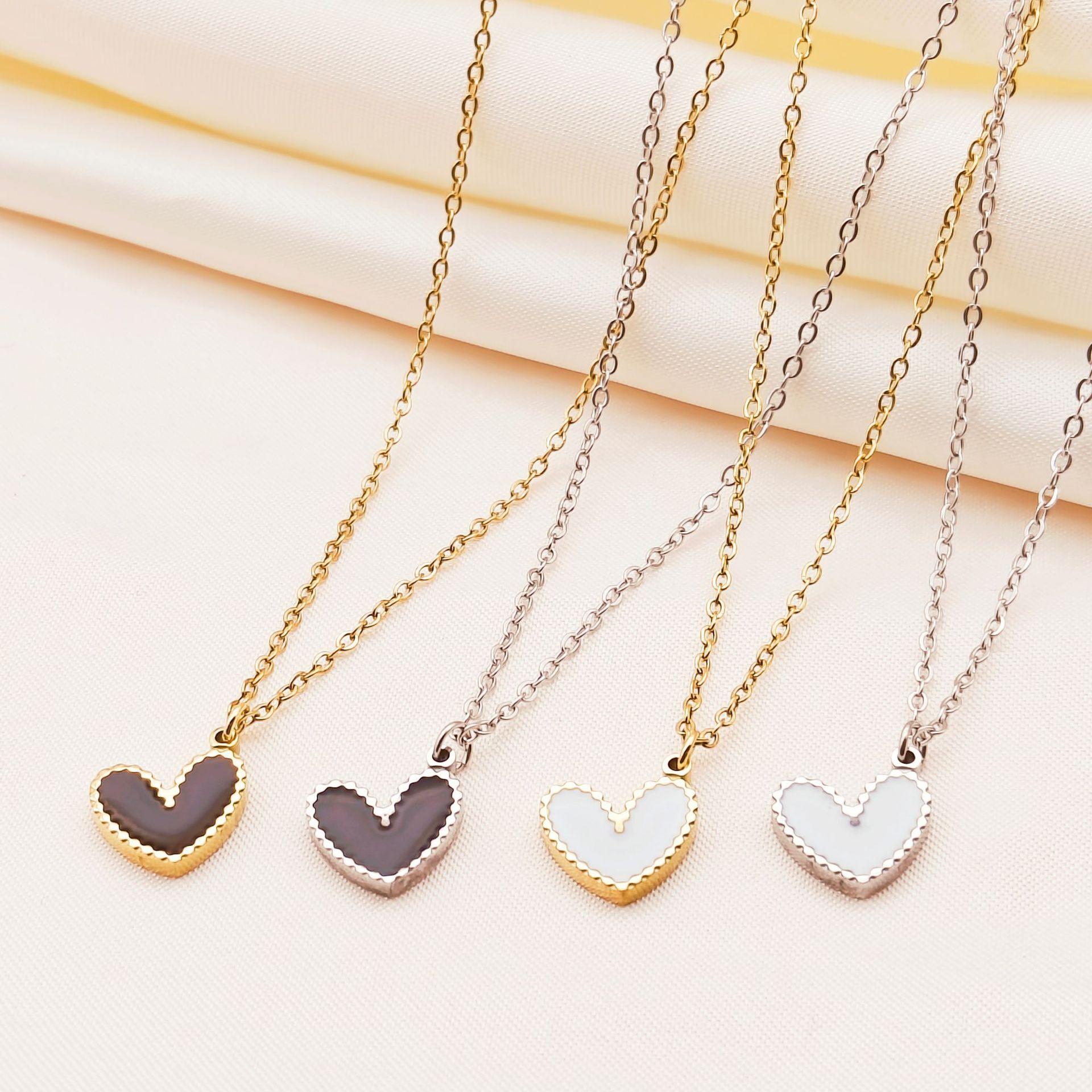 Cadena de Clavícula de Acero Inoxidable Electrochapado de Estilo Europeo y Americano de Alta Gama con un Collar con Colgante de Esmalte Multicolor en Forma de Corazón Simple y Único