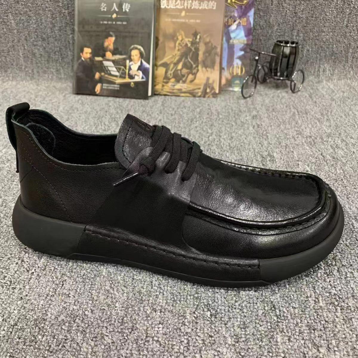 Zapatos de hombre de cuero genuino, zapatos casuales de negocios de primavera, nuevos zapatos de cuero 2025, de moda, combinables con todo, suela gruesa, antideslizantes, estilo británico para hombres.
