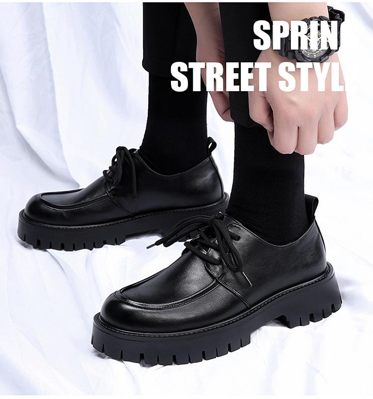 Zapatos de Hombre Primavera Transpirables 2025 Nuevos Zapatos Casuales de Moda de Suela Gruesa Zapatos Grandes de Cuero para Hombre de Negocios Británico Cuero Genuino