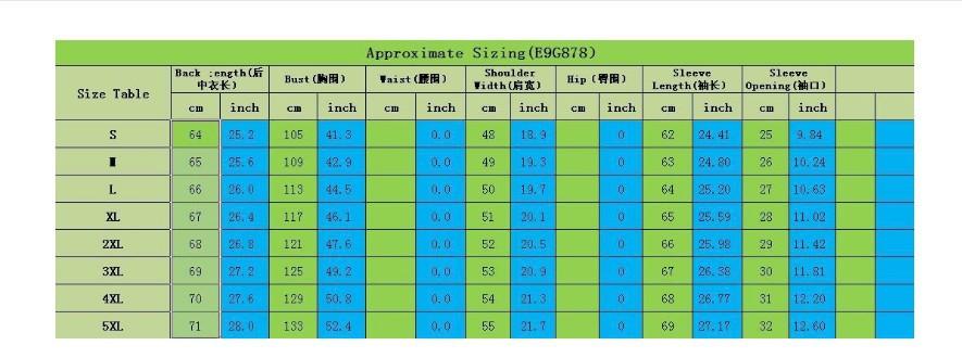 S, M, L, XL, XXL, XXXL, 4XL, 5XL