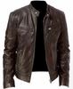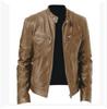 Chaqueta de cuero con cuello alto para hombre, abrigo de cuero PU decorativo con bolsillo y cremallera, estilo europeo y americano, para otoño de 2021