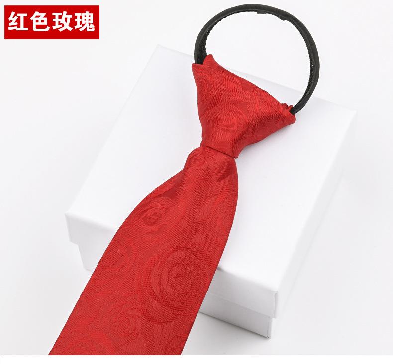Corbata 8cm Vestido de Hombre Negocios Rojo y Negro Estudiante Carrera Boda Novio Cremallera Perezosa Fácil de Jalar