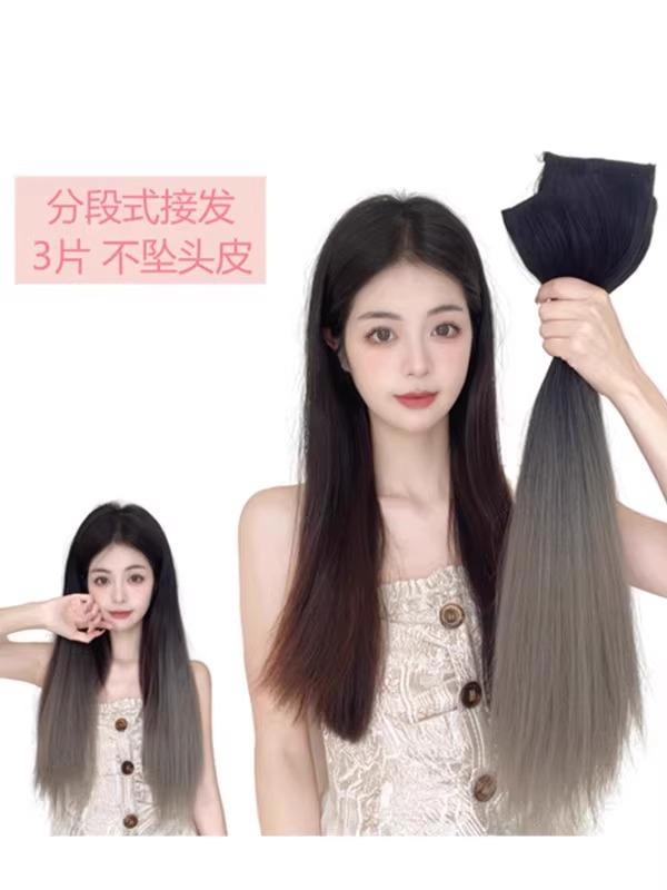 Peluca de Cabello Lacio Degradado Set de Tres Piezas para Mujer Invisible y Sin Marcas Pieza de Extensión de Cabello Segmentada a Color de Tres Piezas Volumen Esponjoso