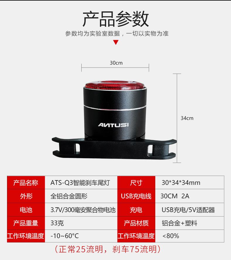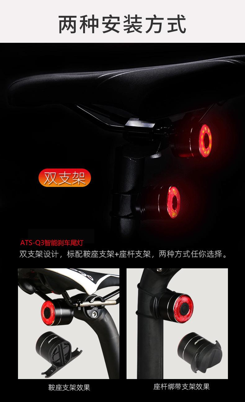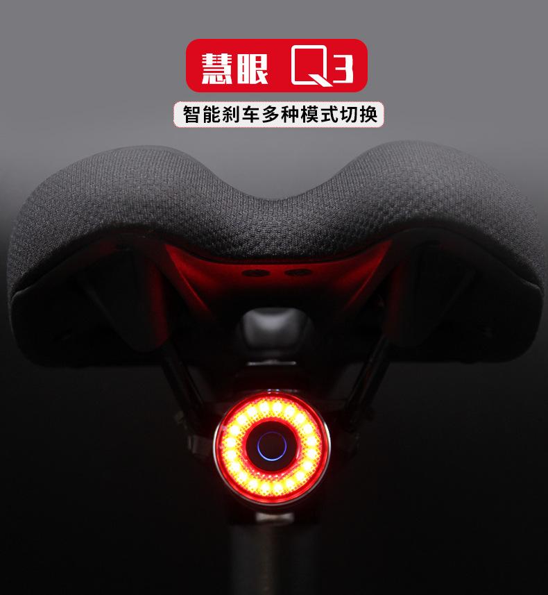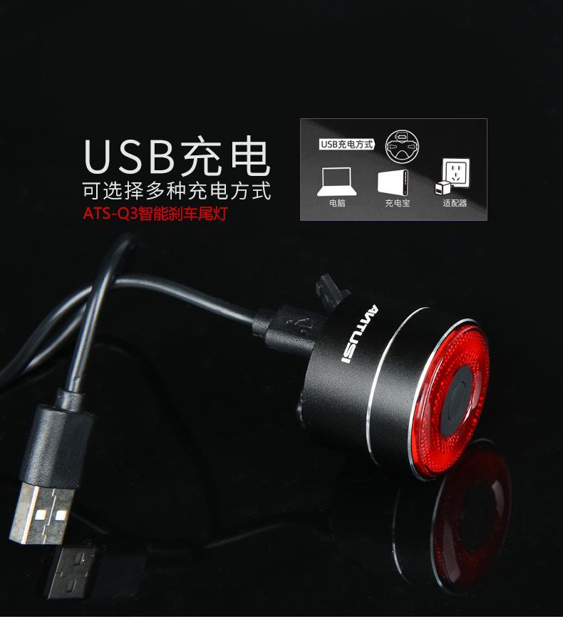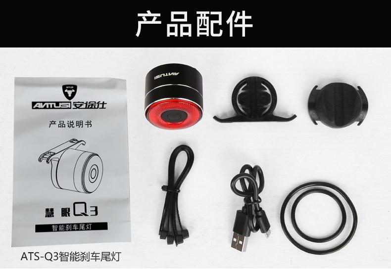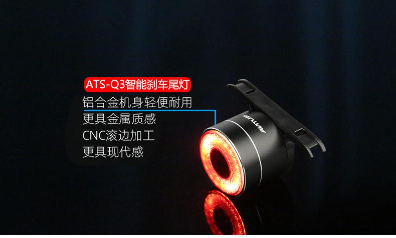ANTUSI Antusi Q3 luz trasera inteligente de freno luz trasera para bicicleta de carretera luz de freno luz de advertencia luz trasera recargable