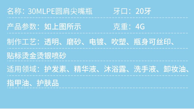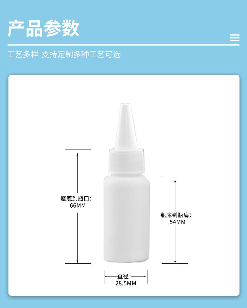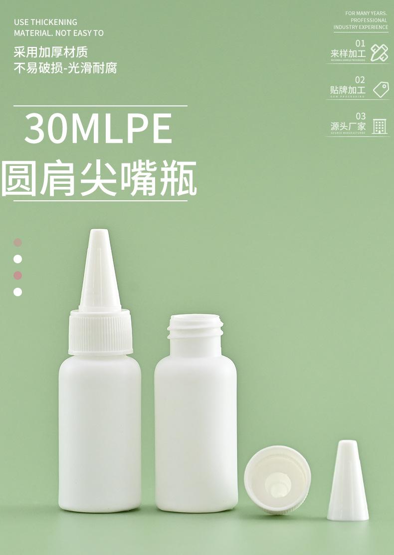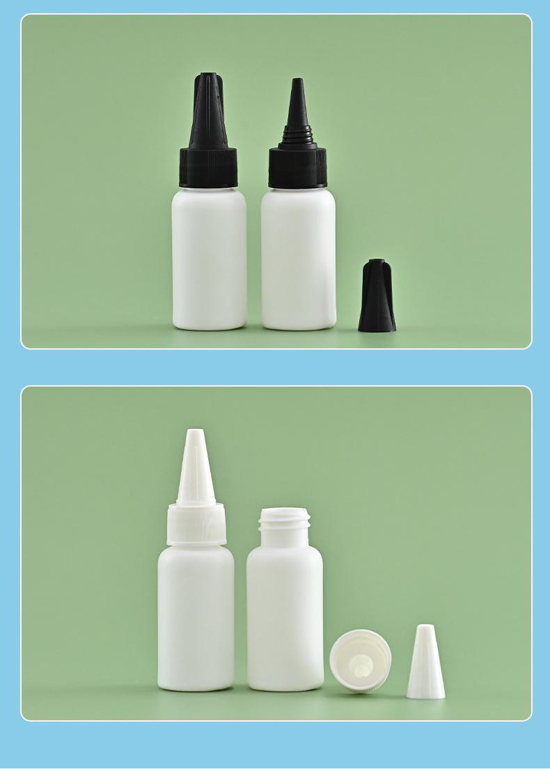 Suministro en stock: Botella de boca puntiaguda de 30 ml, botella puntiaguda de PE, botella de epoxi, botella de cabello eléctrico, botella redonda de plástico