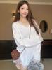 Camiseta elegante de manga larga estilo coreano de primavera y verano con costuras de encaje y base modal, blusa de mujer con cuello en V, color liso, combinable con todo.