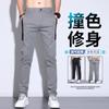 Pantalones casuales de verano finos con cintura elástica y costuras para hombre, pantalones deportivos holgados y rectos, pantalones largos ajustados.