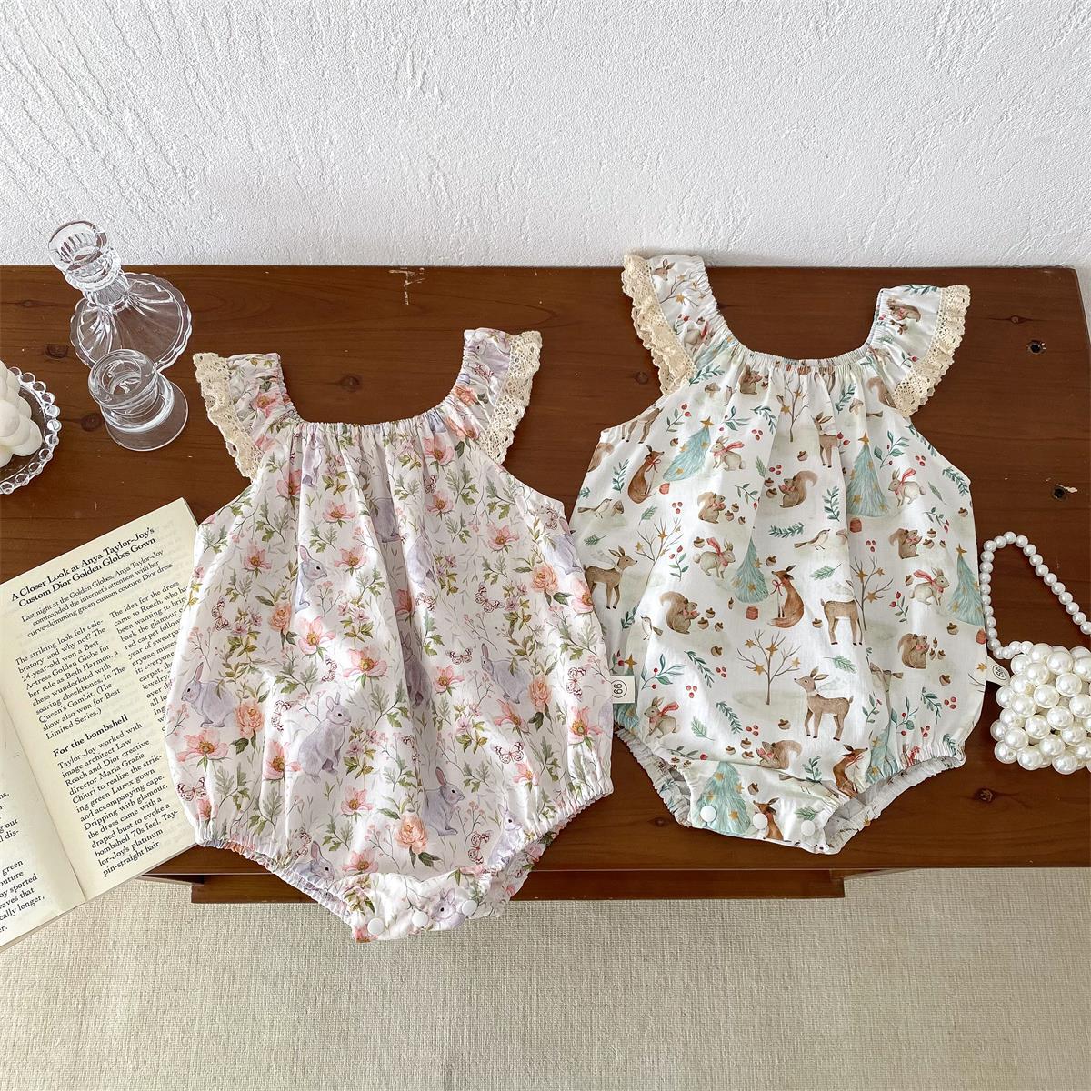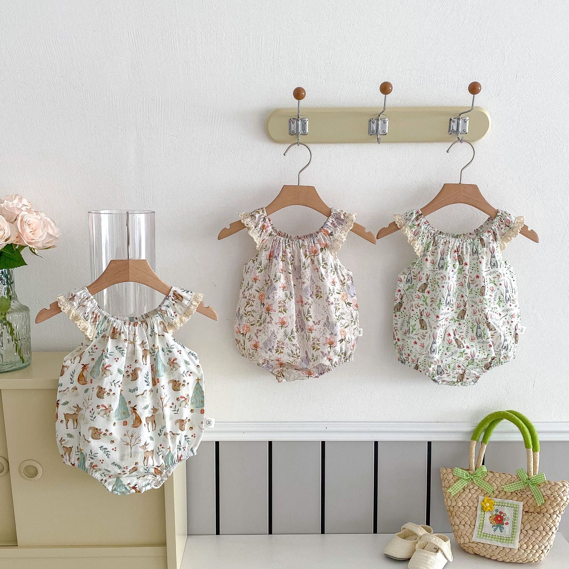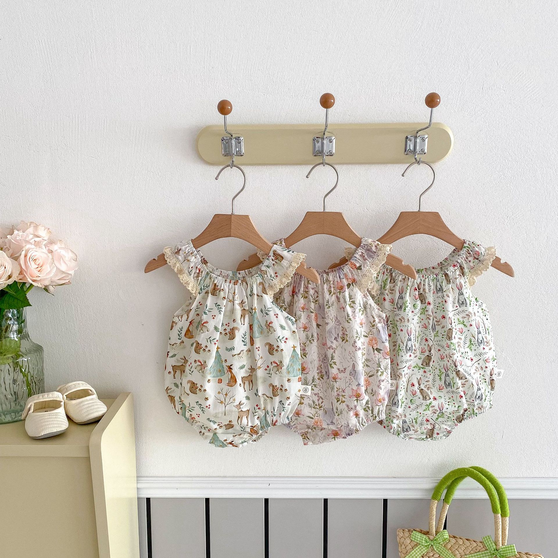 2025 Verano Estilo Coreano Arnés de Tirantes Bebé Niña Mono Delgado sin Mangas Recién Nacido Algodón Mameluco